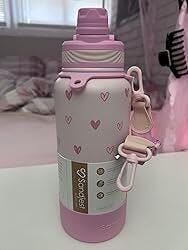 I bought this water bottle for my daughter and she absolutely loves it. She uses it every day at school, and it keeps her water cold for a very long time. The design is cute, the strap is practical, and it’s easy to carry around. Both the straw and spout lids are very convenient. Great quality and a perfect gift for kids or teens