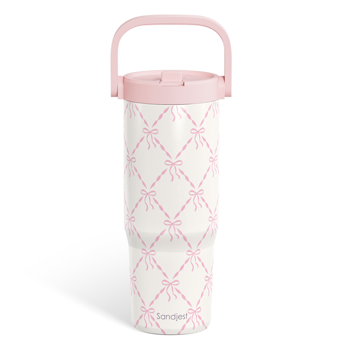 Bow Stainless Steel Straw Lid Tumbler 30oz with Carry Handle for Women Girls, Insulated Travel Coffee Cup, Gift for Sports Outdoor Workout Christmas Birthday