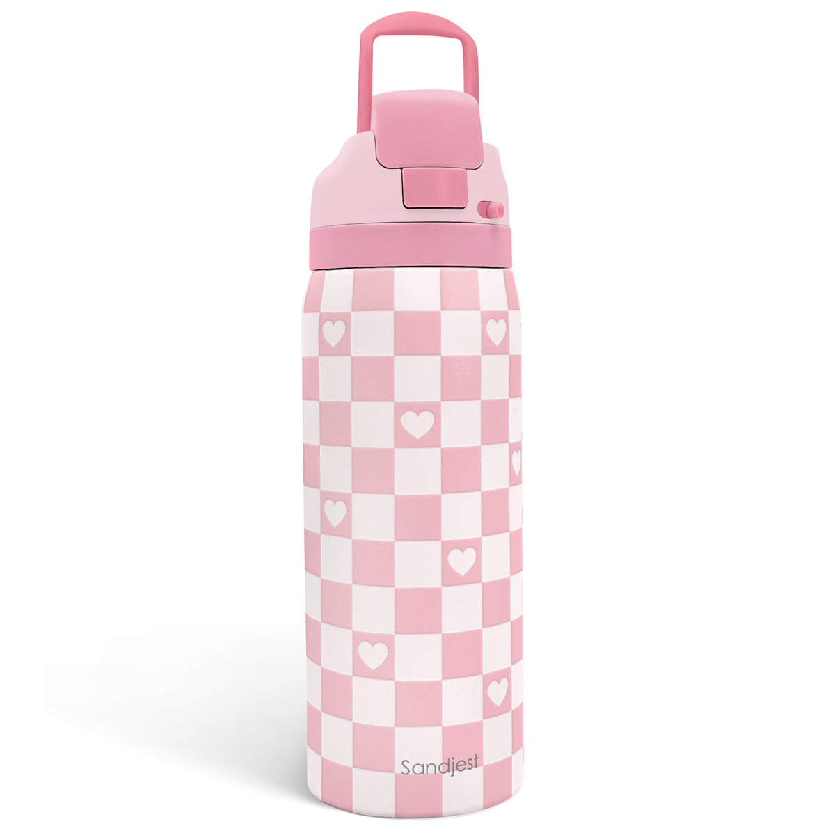 Checkered Heart Insulated Stainless Steel Water Bottle with Straw for Sports and Travel, 32oz, Gifts for Women Girls Friends Teens Birthday Christmas