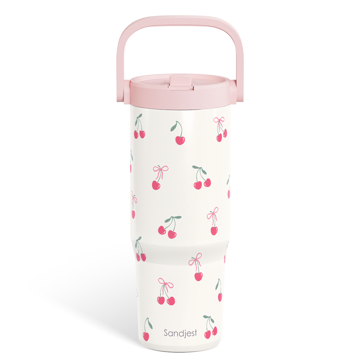 Cherry Stainless Steel Straw Lid Tumbler 30oz with Carry Handle for Women Girls, Insulated Travel Coffee Cup, Gift for Sports Outdoor Workout Christmas Birthday
