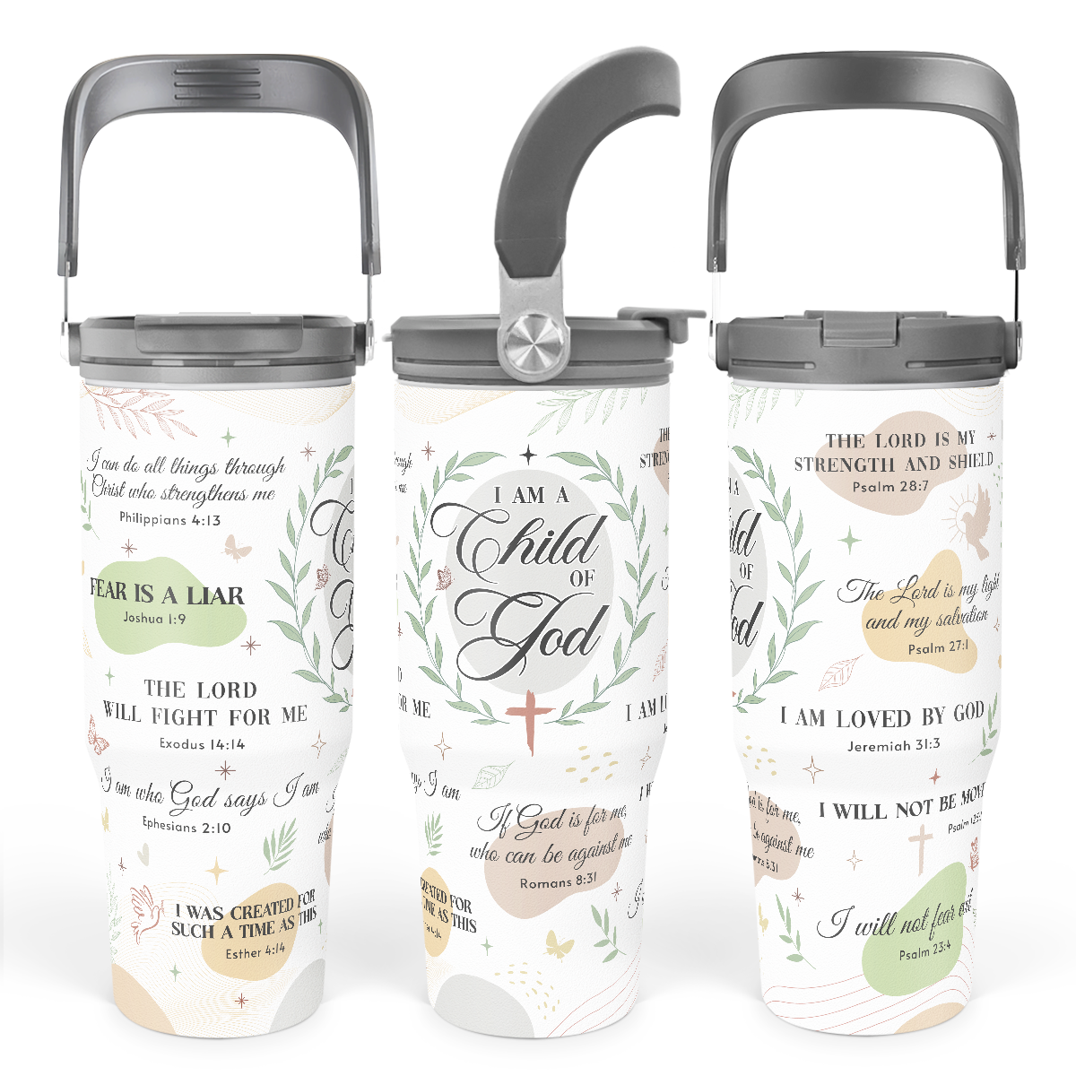 Christian Tumbler with Handle 30oz, Religious Gifts for Women, Inspirational Gifts for Her for Birthday Christmas Mothers Day, Stainless Steel Flip Straw Insulated Tumblers Coffee Travel Cup
