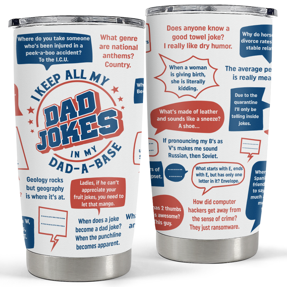 Dad Jokes Insulated Tumbler with Lid - 20oz Stainless Steel Mug for Father - Funny Coffee Cup for Travel Sport Office, Gift for Birthday Father’s Day