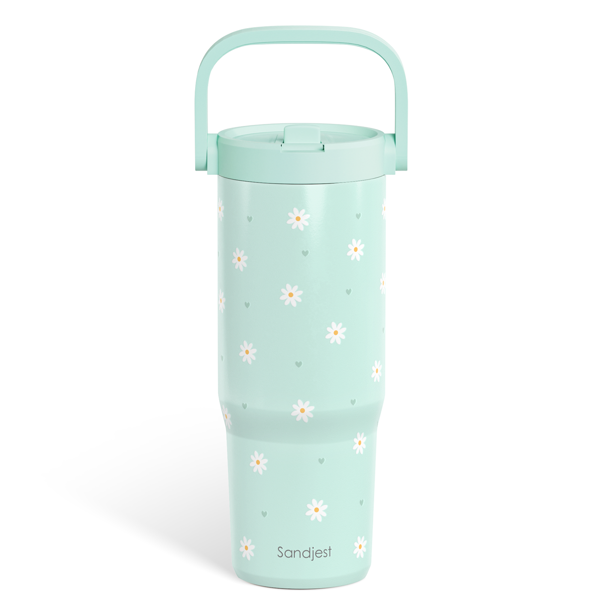 Daisy Stainless Steel Straw Lid Tumbler 30oz with Carry Handle for Women Girls, Insulated Travel Coffee Cup, Gift for Sports Outdoor Workout Christmas Birthday (Mint)