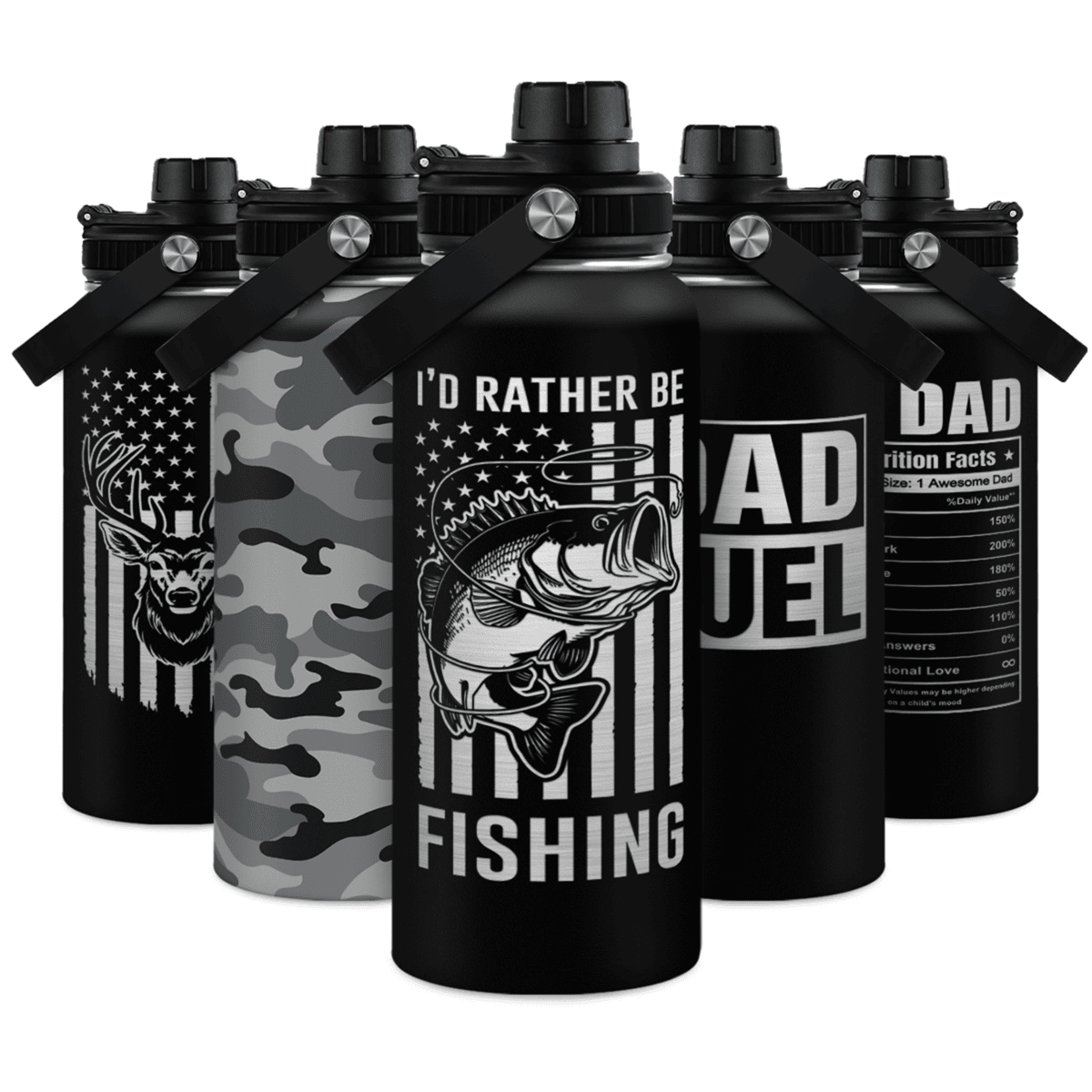 Fishing Water Bottle - 32oz Stainless Steel Insulated Bottles with lid - Deer Fishing Gifts for Fisherman Papa Dad Husband - Gift for Christmas Birthday Fathers Day