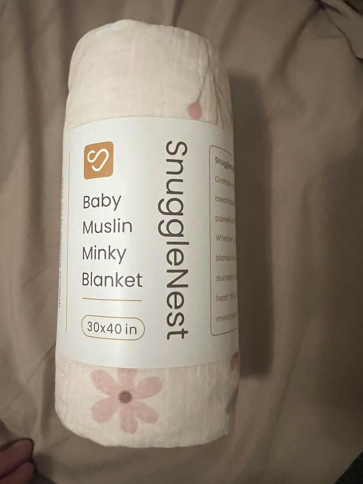 This floral baby blanket is really soft and comfortable. The muslin on one side and the dotted fleece on the other make it versatile for different weather. It’s a good size for a newborn or toddler, and the design is very cute for a nursery. I like that it feels gentle on the skin and washes well without losing softness.
