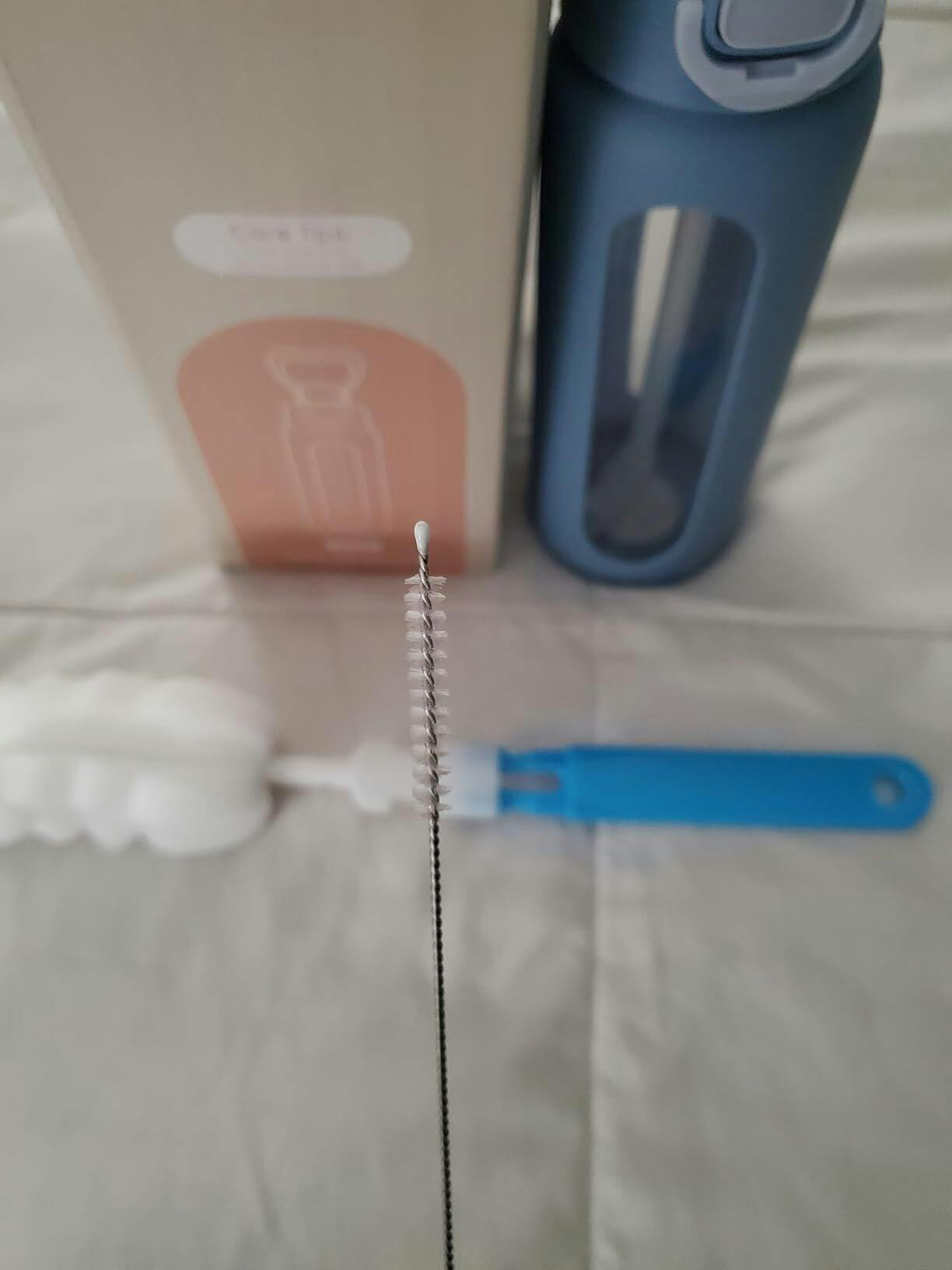 This water bottle is tall and so beautifully constructed. It comes with a straw, and with it's own cleaning tools -a small scrub brush and a larger sponge bottle cleaning brush. I especially love that this bottle is made of glass, and not plastic, so it's safer and much healthier for you. A really good buy. Very chic to carry around.