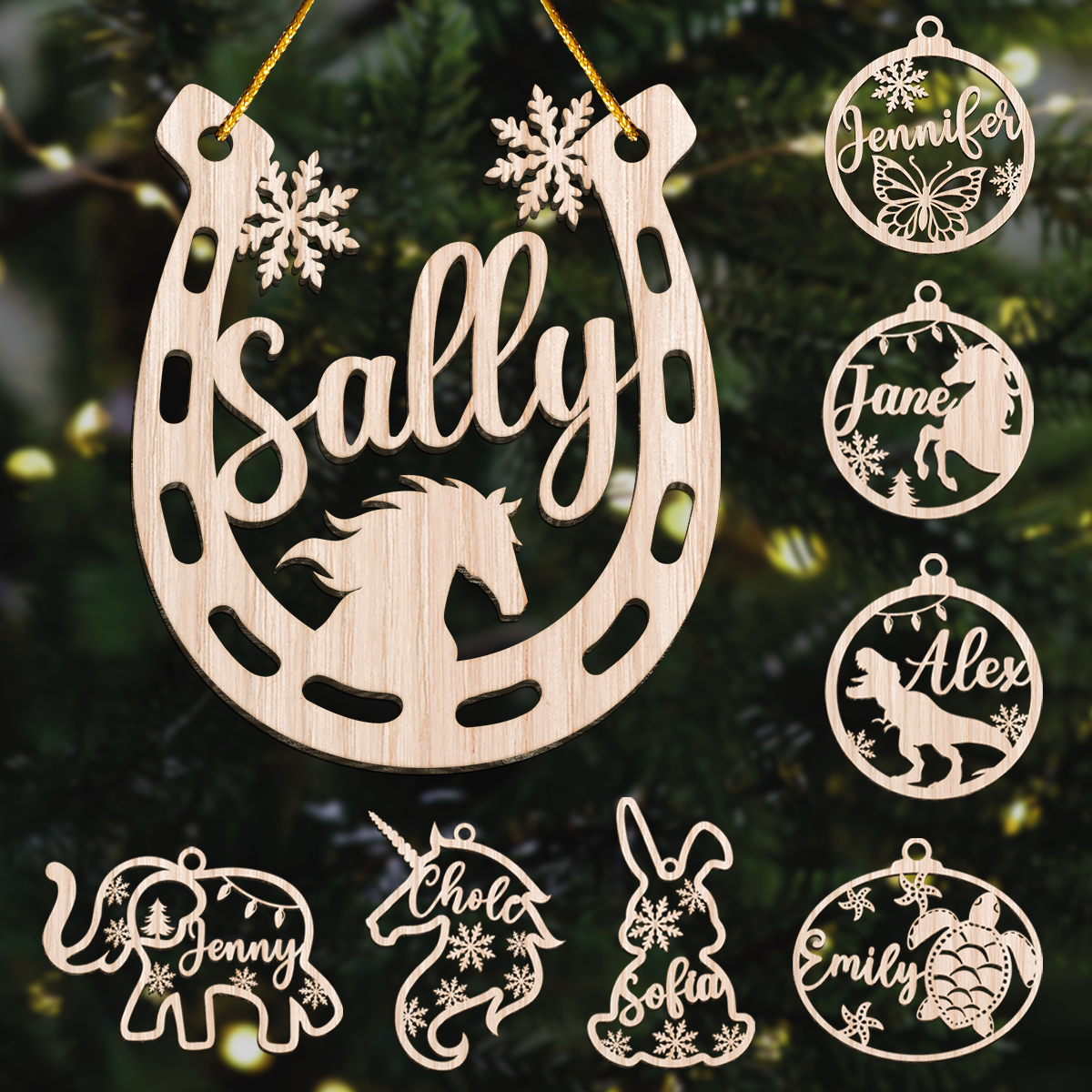 Celebrate this Christmas with a touch of elegance and warmth by decorating with our delightful personalized cut-out wooden ornaments. Its a perfect sentimental gift for your loved ones. Each of our unique Christmas ornaments is meticulously laser cut from high-quality 1/8" wood and personalized with name for a special touch. Complete with a ribbon loop for easy hanging, these ornaments are ready to adorn your tree or become a cherished gift.