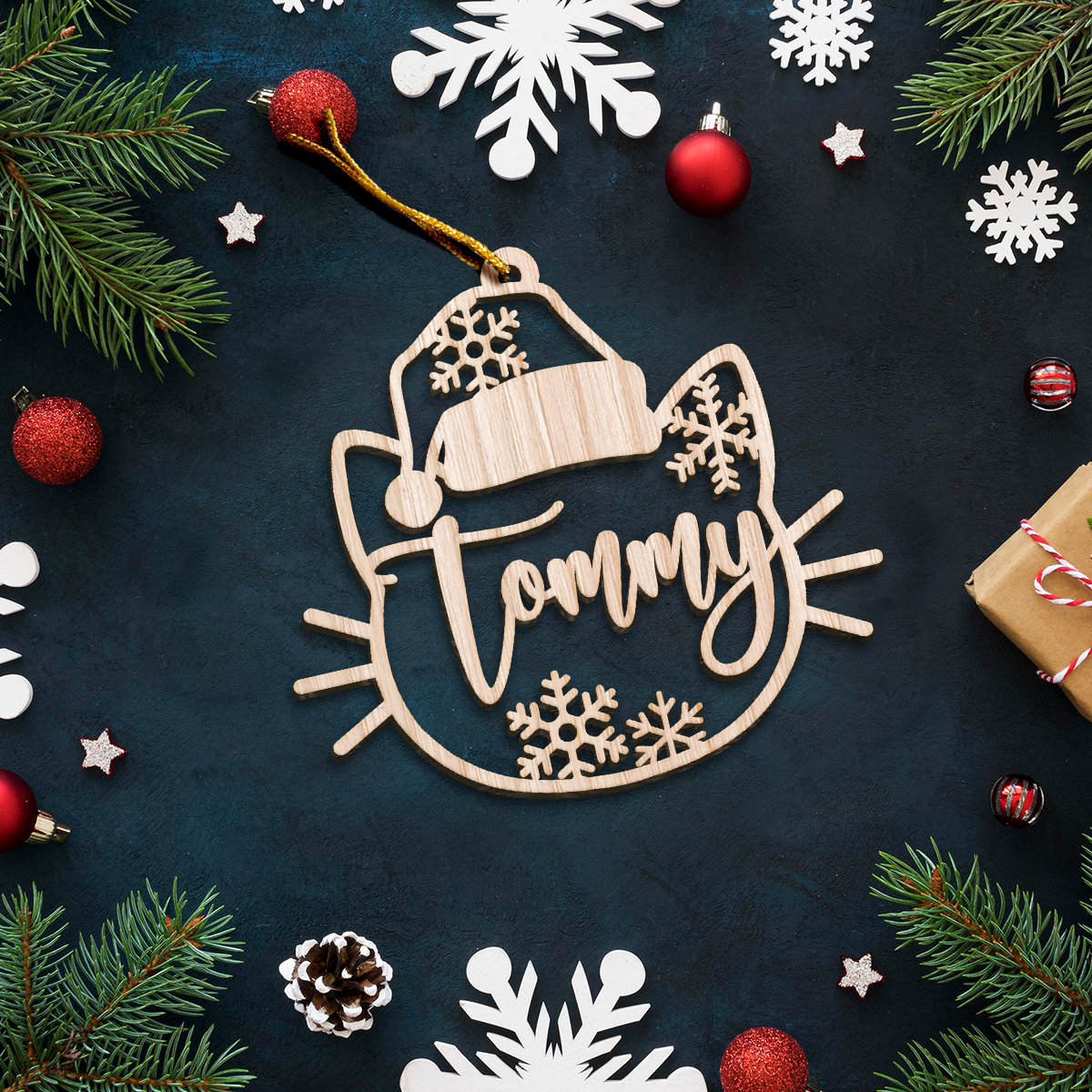 Celebrate this Christmas with a touch of elegance and warmth by decorating with our delightful personalized cut-out wooden ornaments. Its a perfect sentimental gift for your loved ones. Each of our unique Christmas ornaments is meticulously laser cut from high-quality 1/8" wood and personalized with name for a special touch. Complete with a ribbon loop for easy hanging, these ornaments are ready to adorn your tree or become a cherished gift.