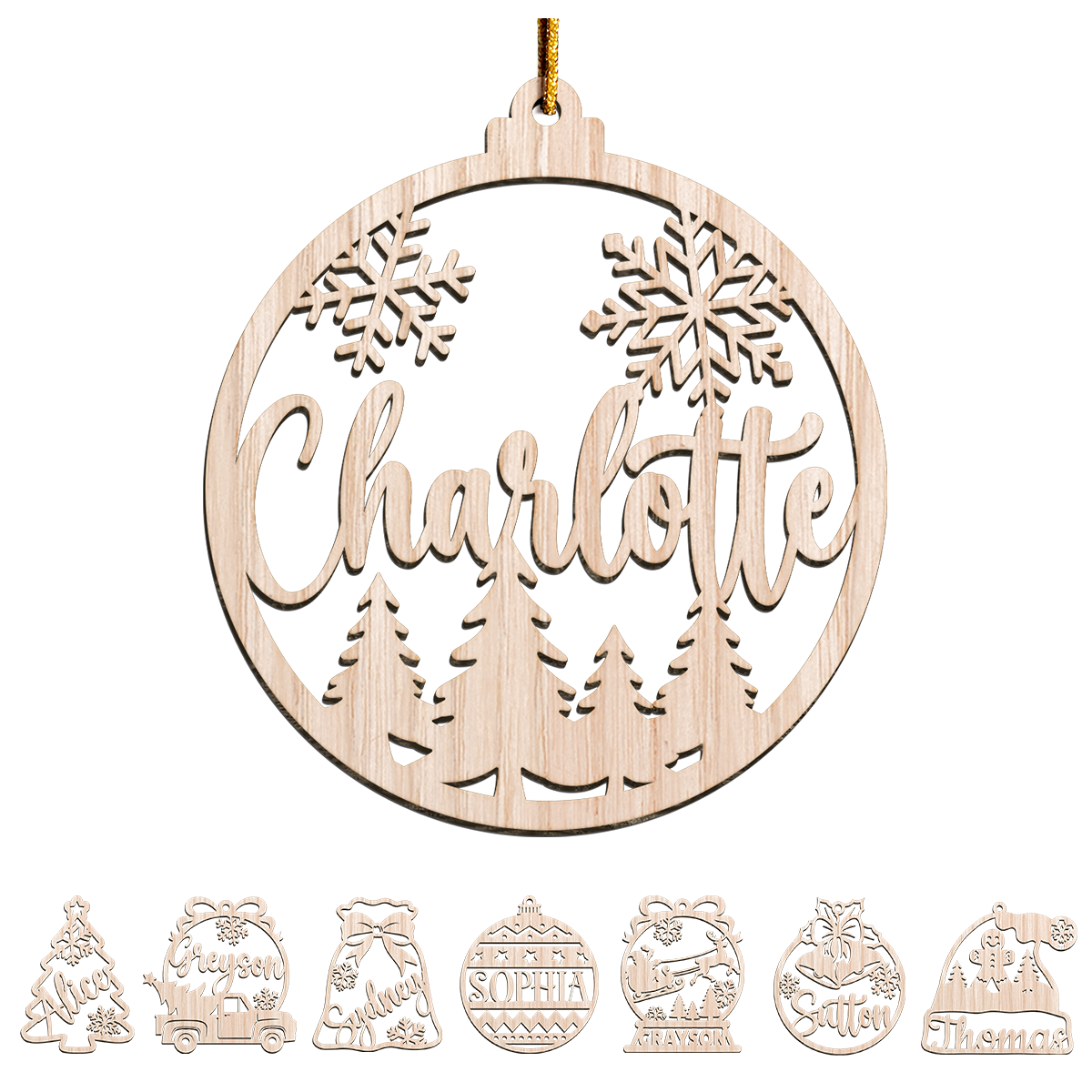 Celebrate this Christmas with a touch of elegance and warmth by decorating with our delightful personalized cut-out wooden ornaments. Its a perfect sentimental gift for your loved ones. Each of our unique Christmas ornaments is meticulously laser cut from high-quality 1/8" wood and personalized with name for a special touch. Complete with a ribbon loop for easy hanging, these ornaments are ready to adorn your tree or become a cherished gift.