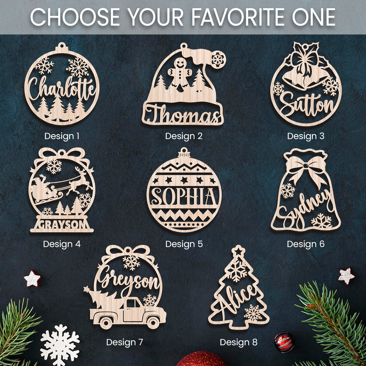Personalized Christmas Ornament - Customized Name Cut-out Wooden Ornament, Christmas Decoration Gift for Family Men Women Friends Boy Girl Couple