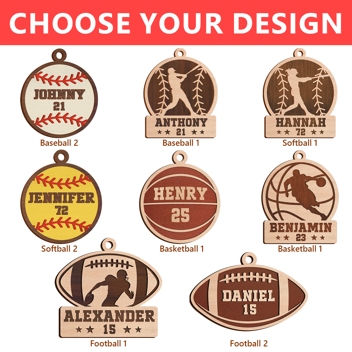 Personalized Christmas Ornament for Sports Players - 2 Layered Wooden Design, Gifts for Baseball, Softball, Basketball, Football Lovers, Men Women Boys Girls