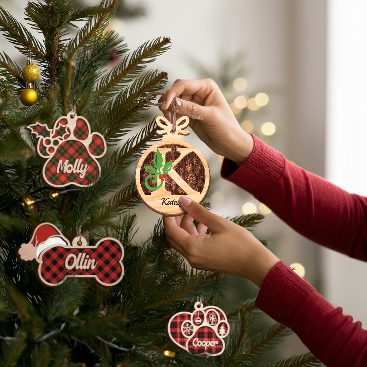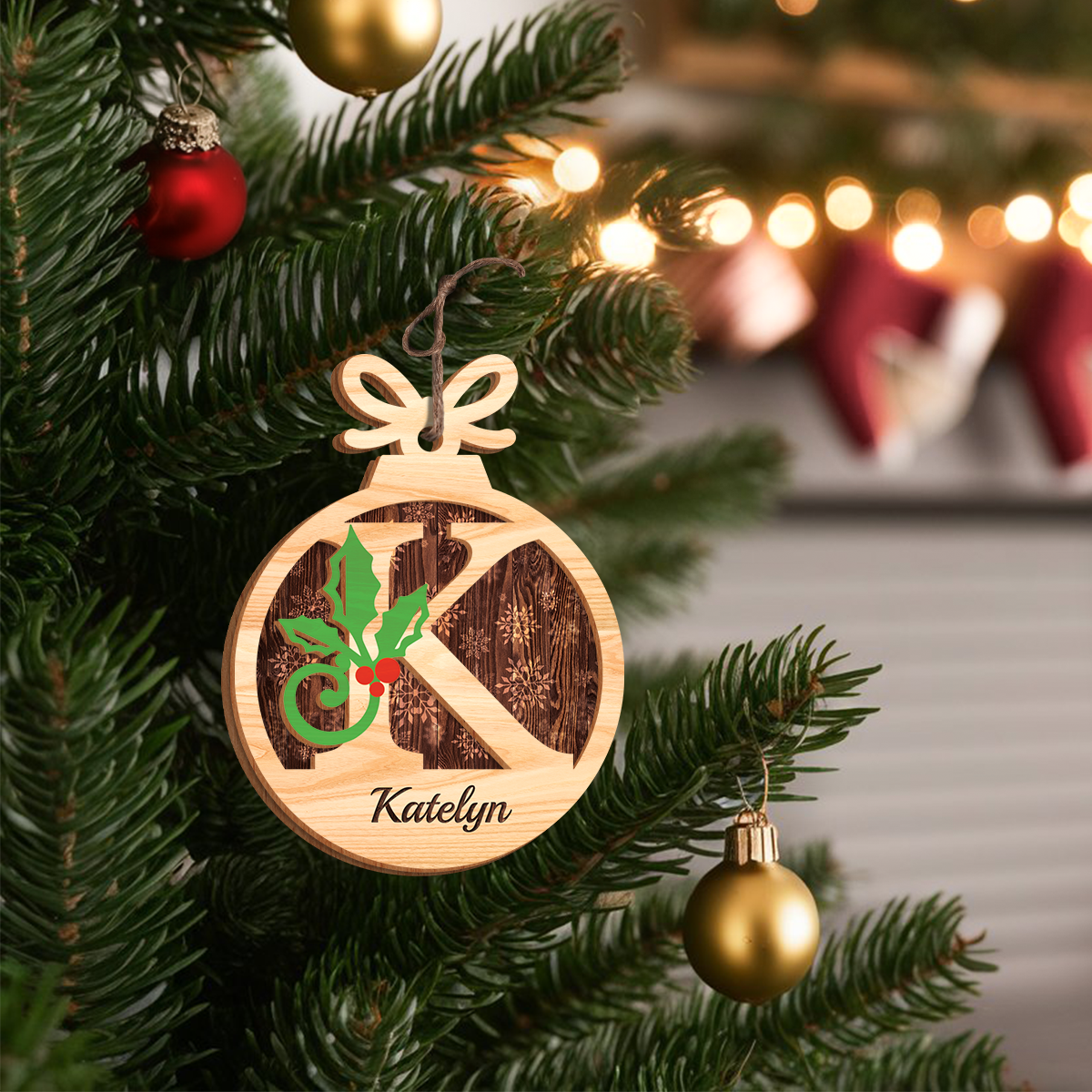 Personalized Christmas Ornament Initial with Name - 2 Layered Wooden Design, Custom Monogram Ornament, Christmas Hanging Decor Gifts for Women Boys Girls