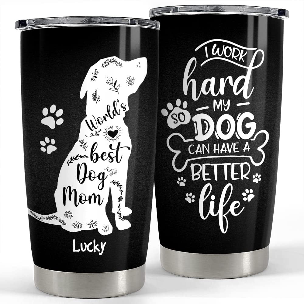 The Tumbler is the perfect water pitcher for discerning moms, it offers both durability and customizable options. The insulated Tumbler can maintain your drinks' temperature for hours, has a spill-proof cover, and comes with a steel straw, perfect for busy dog mom tumbler on the move.