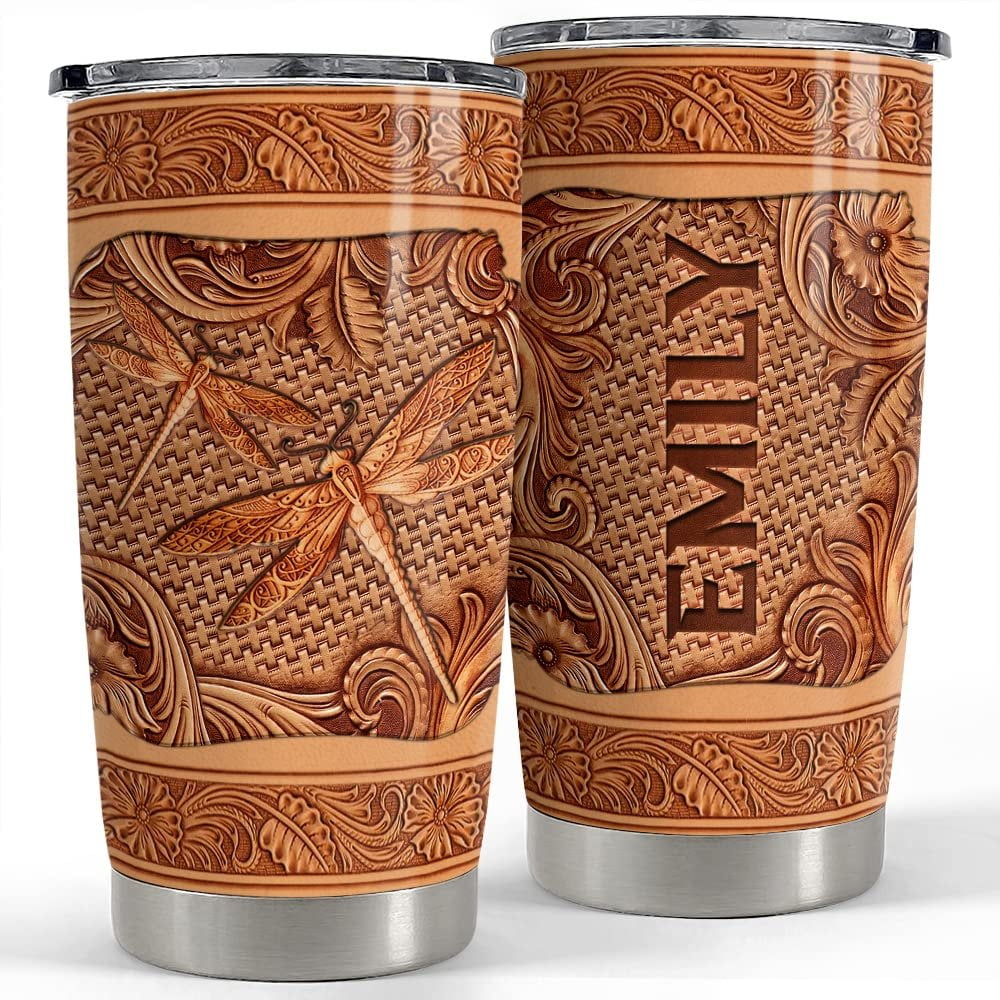 Personalized Dragonfly Tumbler Wood Sculpture Drawing Best Gift
