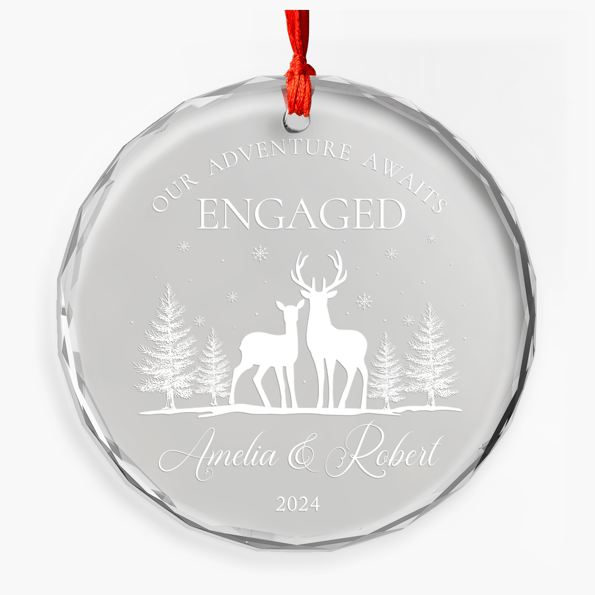 Are you looking for a lovely gift for your beloved ones this Christmas season? Look no further. Our delicate glass ornament is a charming addition to any holiday decor and makes a thoughtful present. Made from high-quality material with the transparent nature of crystals allows them to reflect light, creating a dazzling effect that adds a touch of luxury to any Christmas tree or holiday display. Whether hung on your Christmas tree, displayed on a mantelpiece, or gifted to loved ones, this unique piece captures the spirit of the season. Embrace the beauty of simplicity with our personalized glass Christmas ornament. "- Please note that actual color may be slightly different from the image due to different monitor and light effects