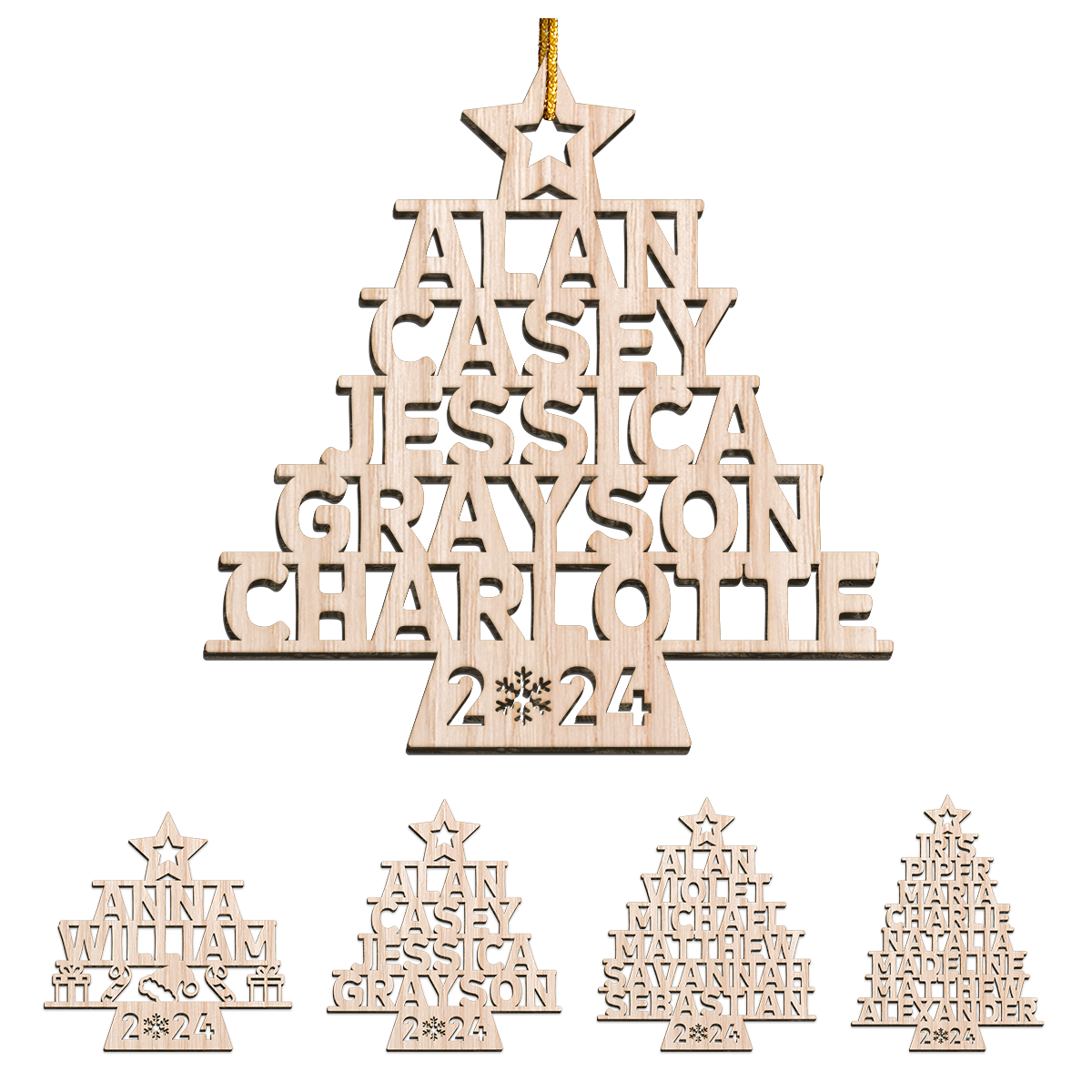 Celebrate this Christmas with a touch of elegance and warmth by decorating with our delightful personalized cut-out wooden ornaments. Its a perfect sentimental gift for your loved ones. Each of our unique Christmas ornaments is meticulously laser cut from high-quality 1/8" wood and personalized with name for a special touch. Complete with a ribbon loop for easy hanging, these ornaments are ready to adorn your tree or become a cherished gift.