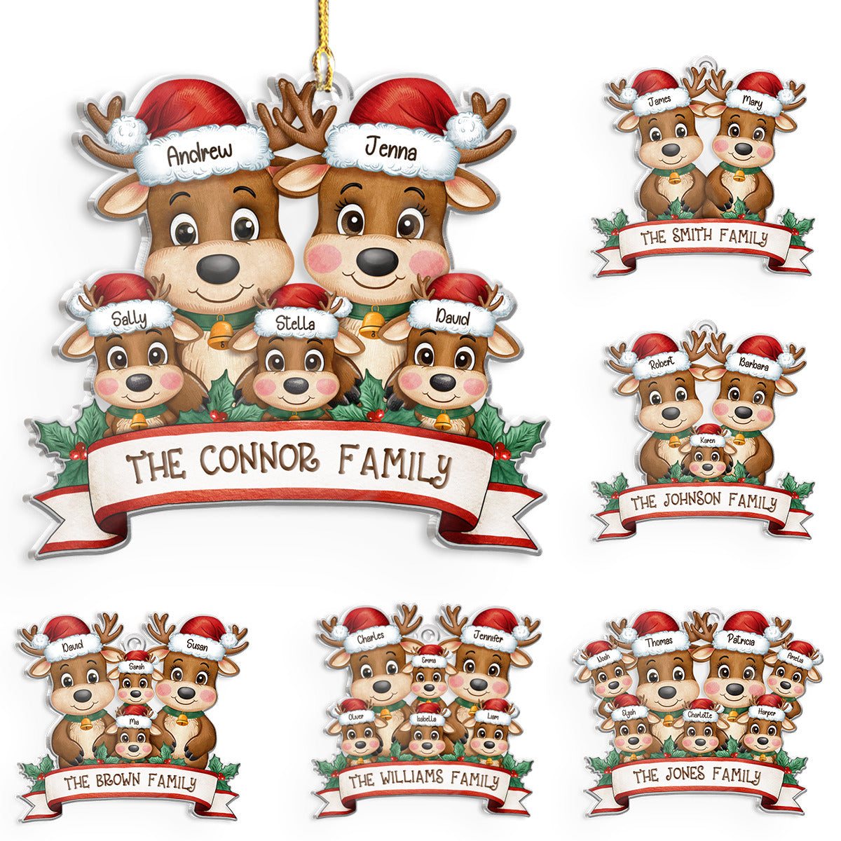 Personalized Family Ornament - Customized Shaped Acrylic Ornaments, Custom Name Reindeer Xmas Ornament, Customized Christmas Hanging Decoration Gifts