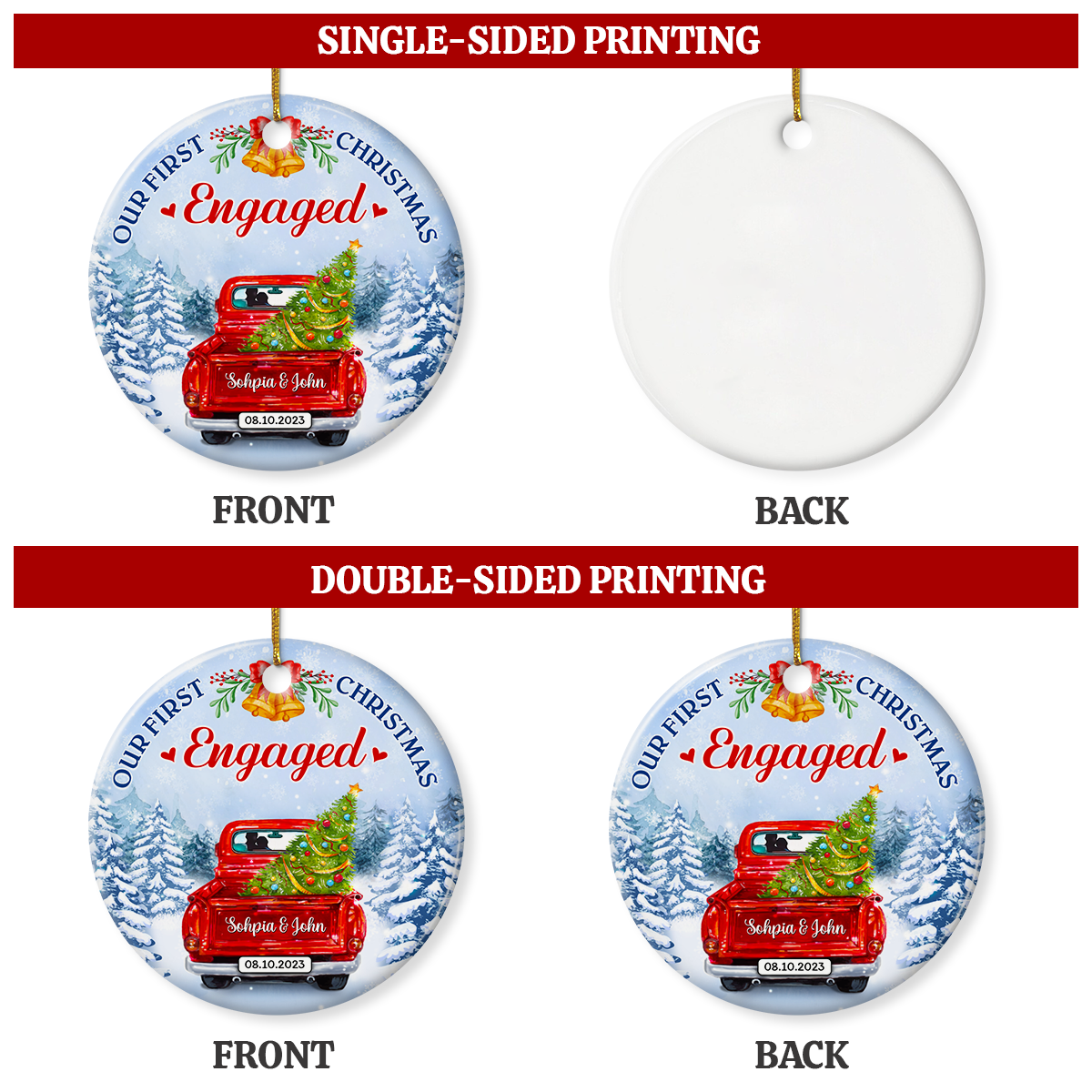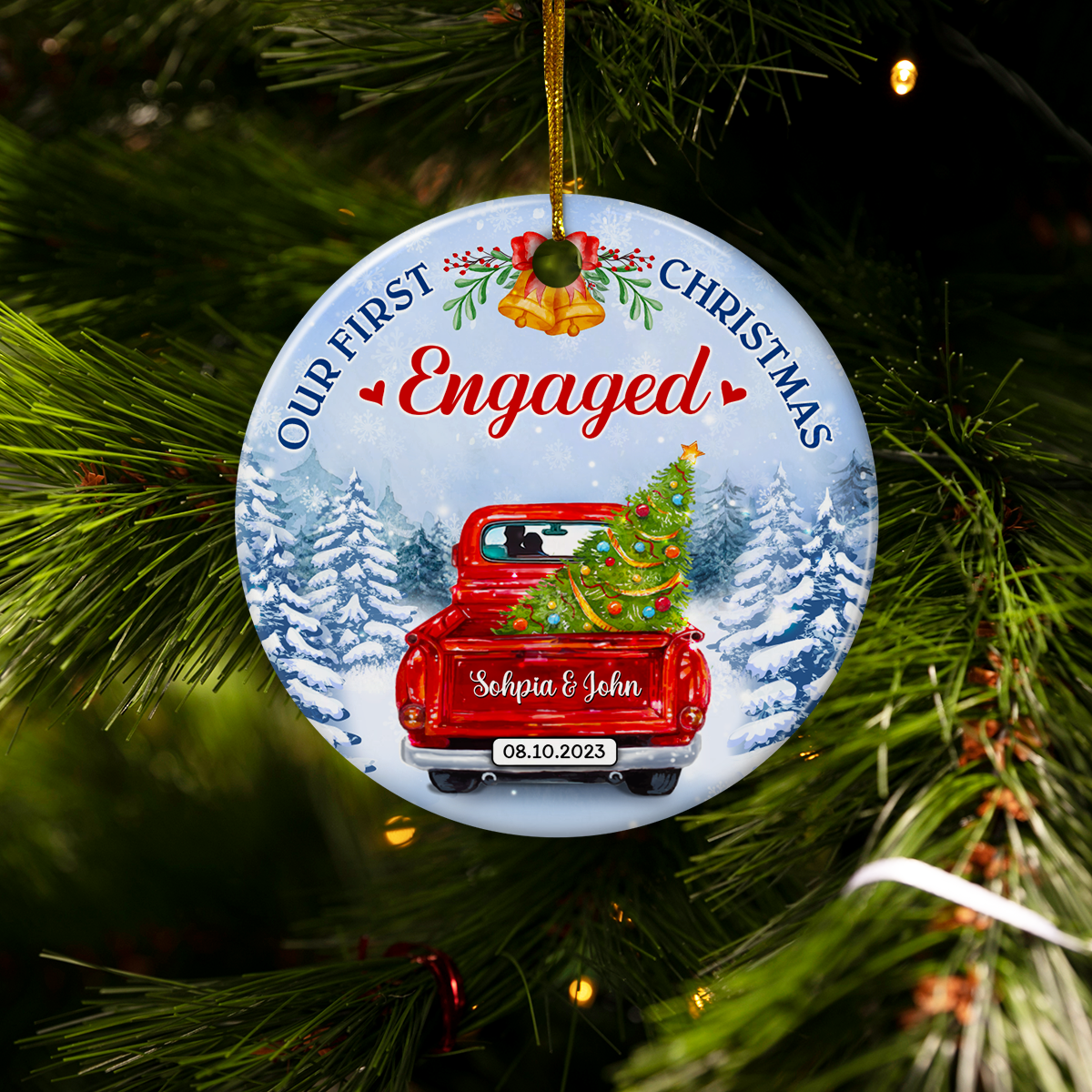 Personalized First Christmas Engaged Ornament 2023 Engagement Keepsake Gifts for Couples Wedding Bridal Shower Hanging Ceramic Ornaments Xmas Tree Decor Newlywed Gifts for Couple