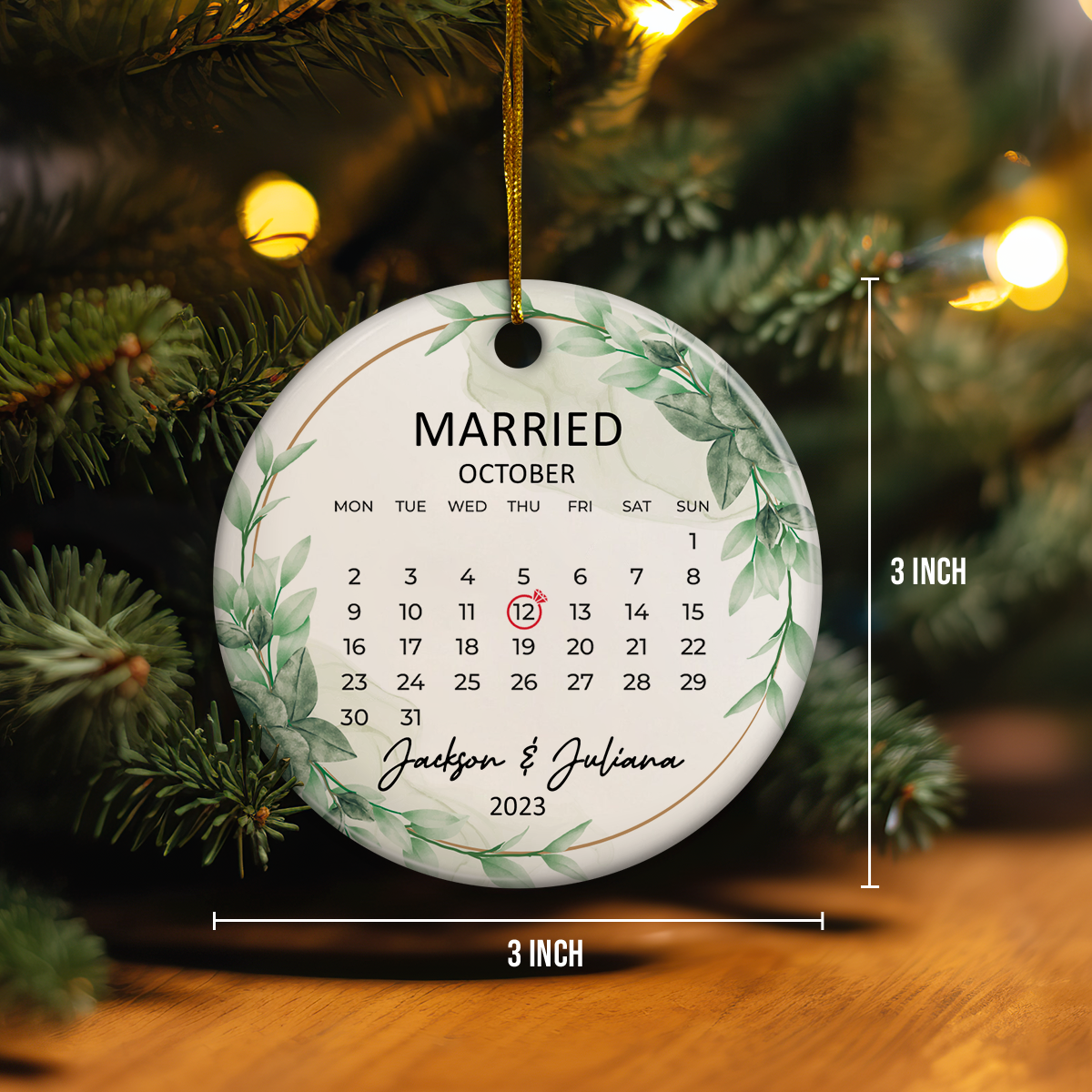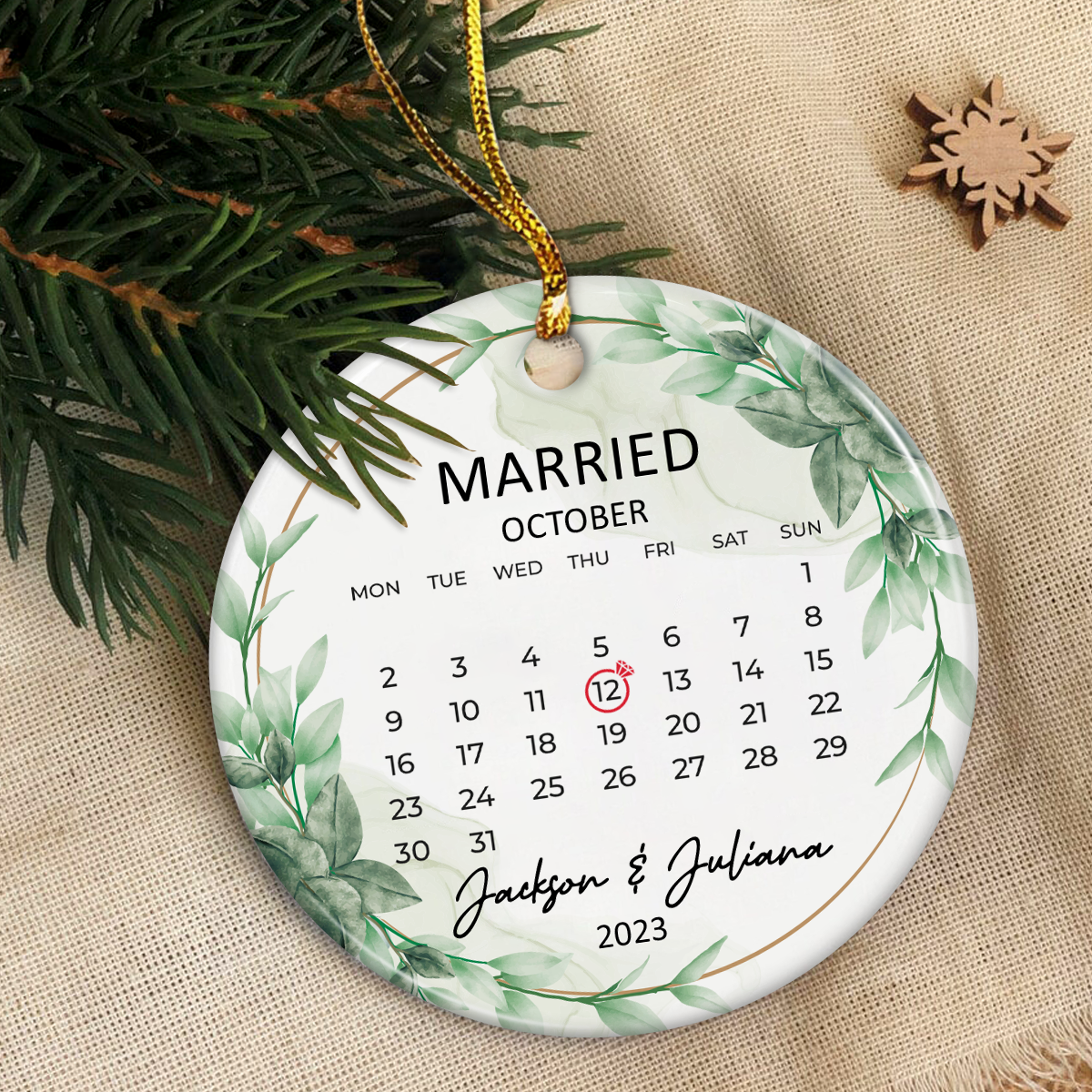 Personalized First Christmas Married Ornament Couple Christmas Double Sided Ceramic Ornaments with Photo Picture Wedding Marriage Custom Gift for Couple Newlywed Xmas Tree Decorations