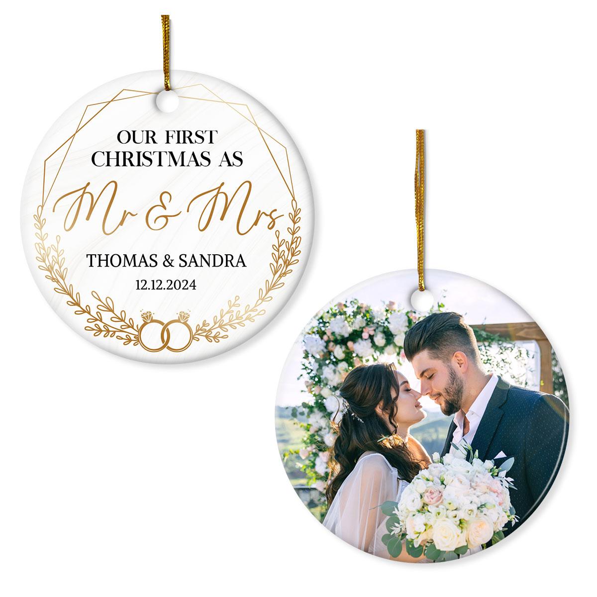 Personalized First Christmas Mr and Mrs Ornament Custom Photo Picture Couple Ceramic Double Sided Ornaments Wedding Marriage Keepsake Gifts for Newlywed Couple Christmas Tree Decorations