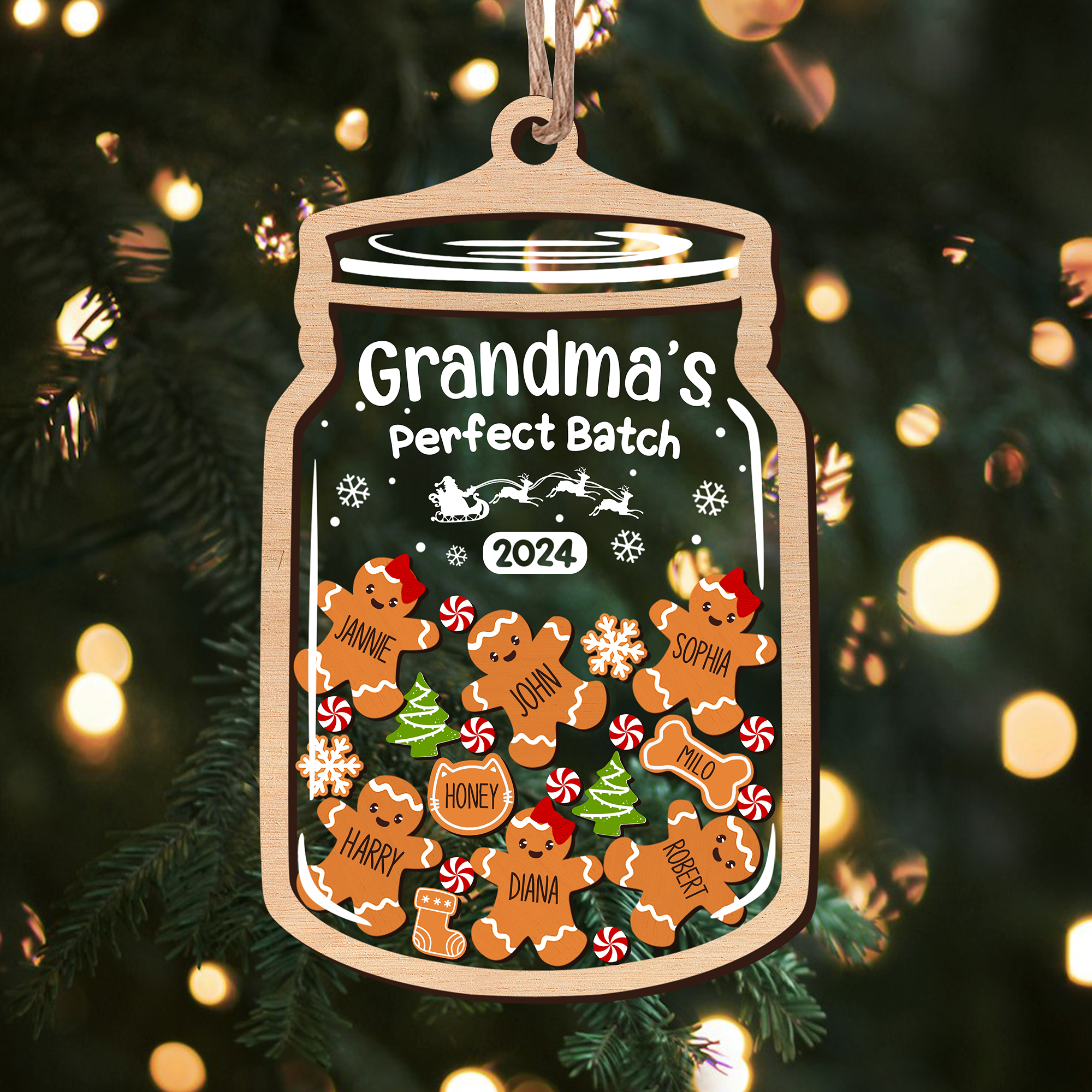 Personalized Grandma Christmas Ornament - Custom Names 5 Layered Wooden Ornament, Shaker Ornament, Grandma's Perfect Batch Family Name, Gift for Grandmother Nana Mimi