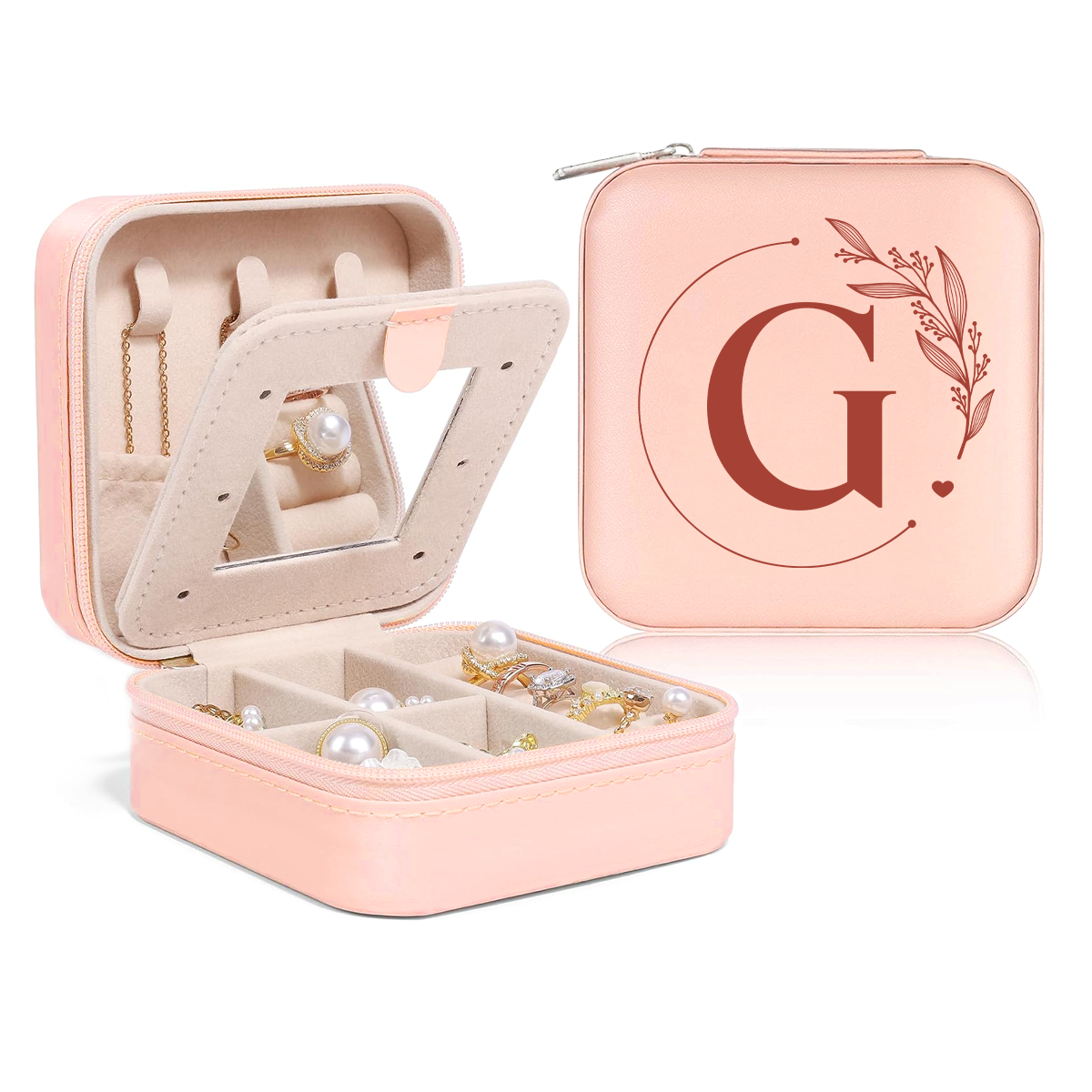 Personalized Jewelry Box, Pink Small Travel Jewelry Box with Initial G, Monogrammed Jewelry Case Organizer for Girls Women Teen, Mini Travel Essentials Gifts for Christmas Birthday