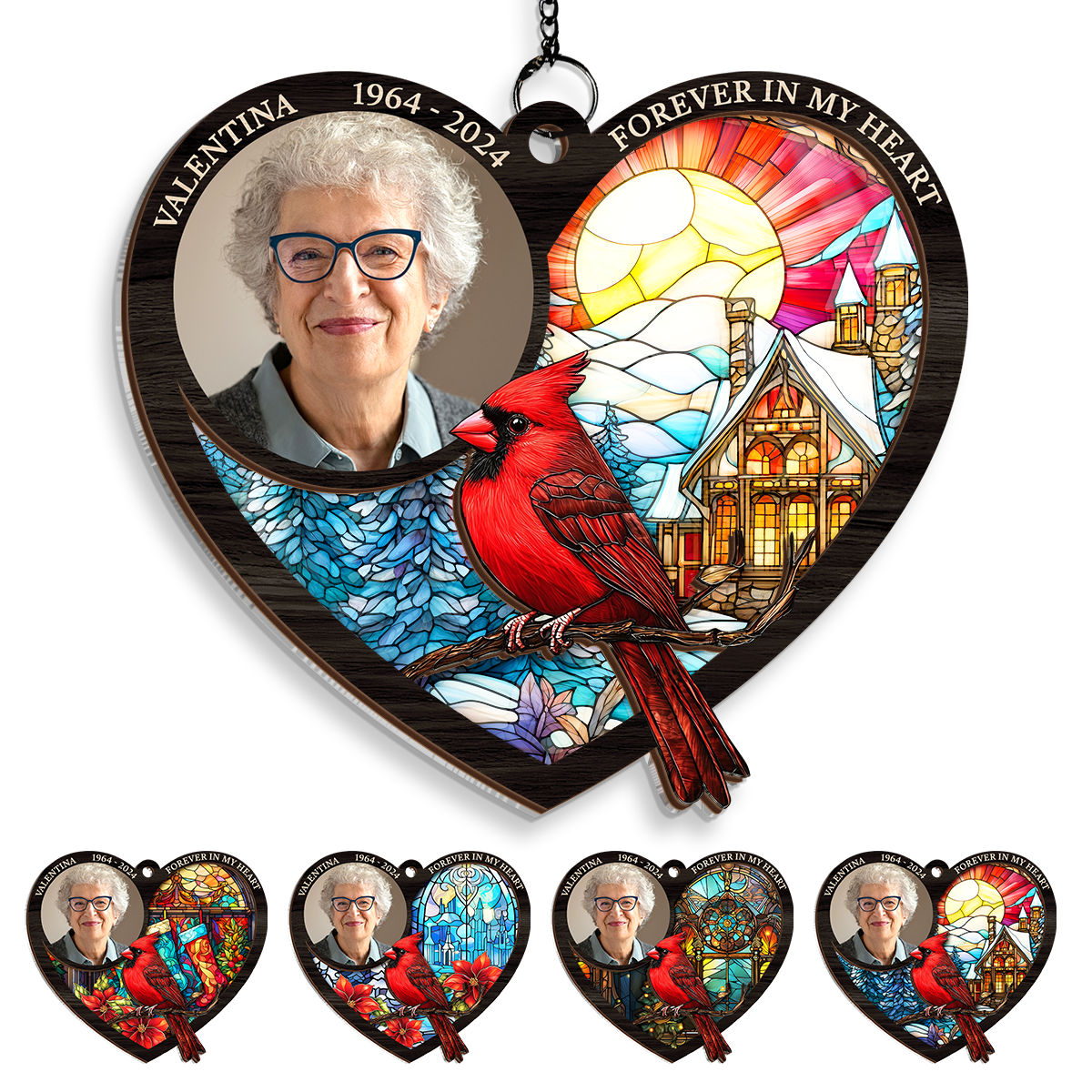 Personalized Memorial Suncatcher Ornament, Custom Photo Hanging Keepsake, Loss of Loved Ones Sympathy Christmas Ornaments, Window Suncatcher