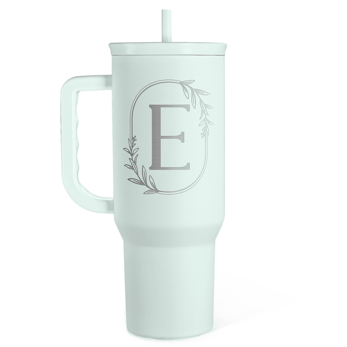 Personalized Monogrammed Tumbler with Handle 40oz, Letter E Tumblers Insulated Coffee Travel Cup, Custom Initial Gift for Women Girls Friends, Monogram Gift for Christmas Birthday Mothers Day