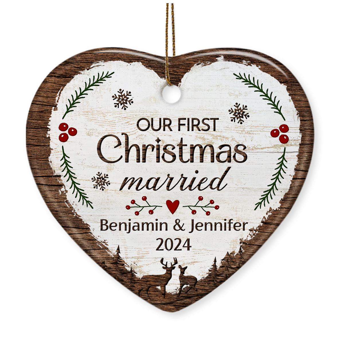 Personalized Our First Christmas Ornament Married Couple Deer Ceramic Ornaments 2024 for Married Couple Lovers Husband Wife Heart Ornaments