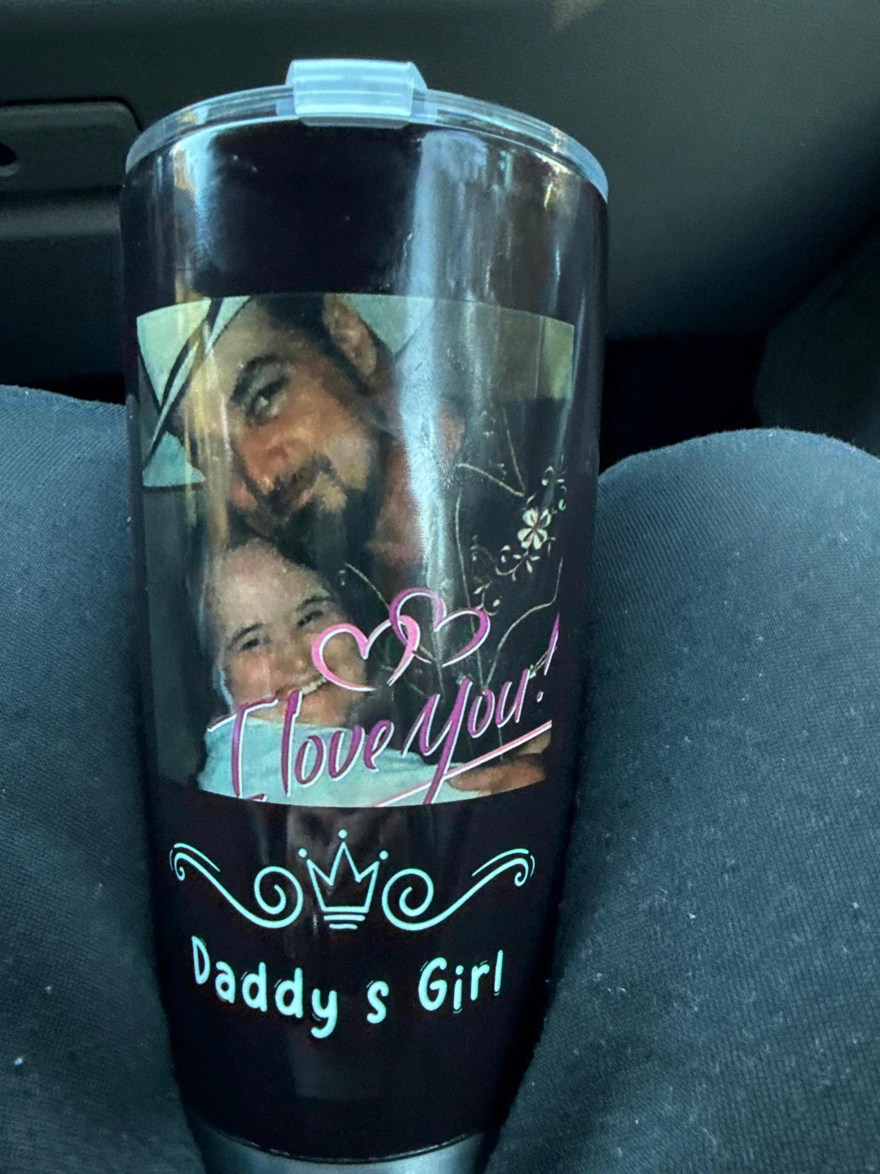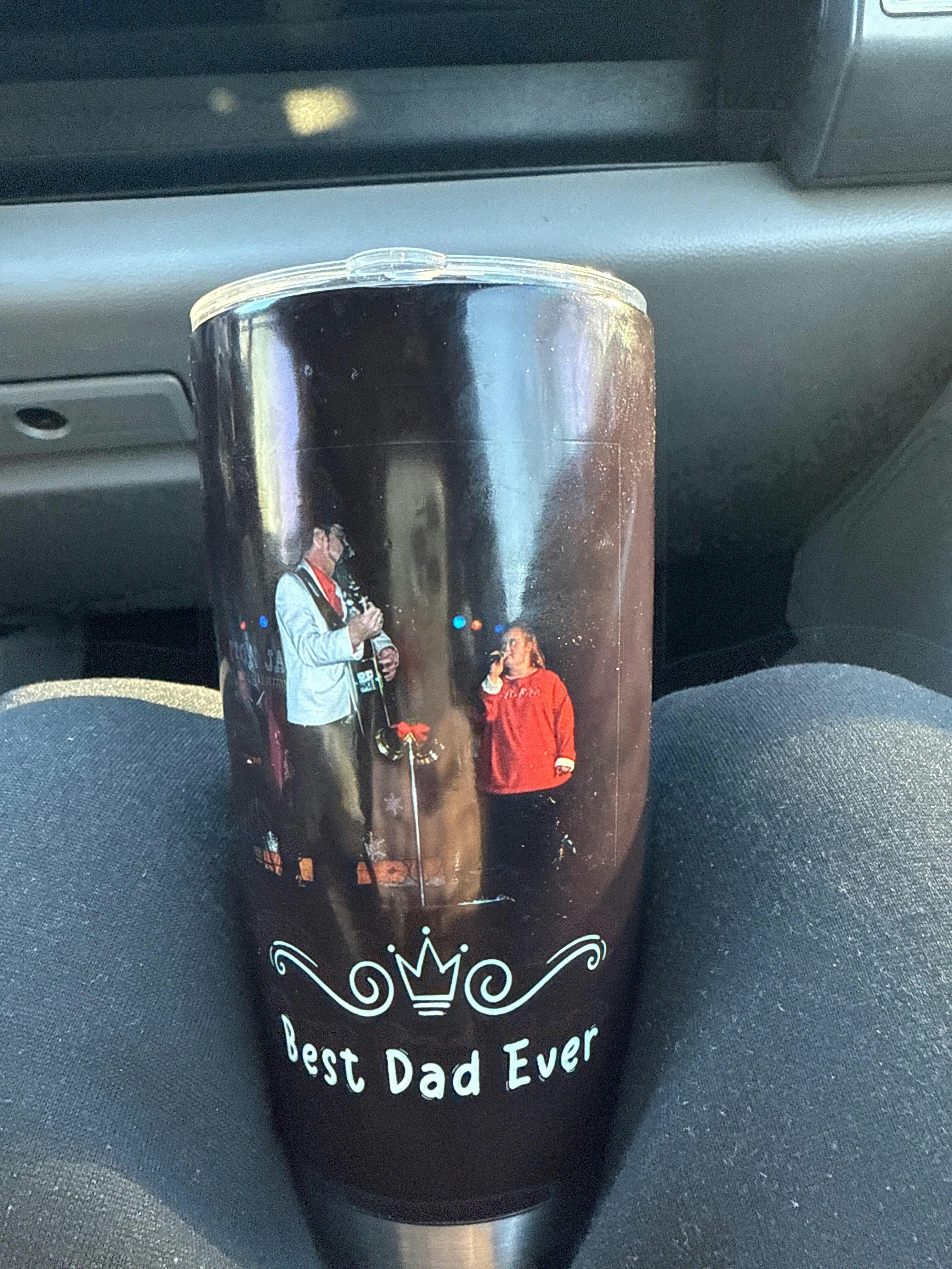 • Get a personalized Tumbler for your dad that will not only look stylish and durable but also feature his photo. With its ability to maintain the temperature of your beverage for an extended duration, a Tumbler ensures that your drink stays hot or cold, has a leak-proof lid, and includes a stainless steel straw, making it convenient for busy parents to carry everything they need.