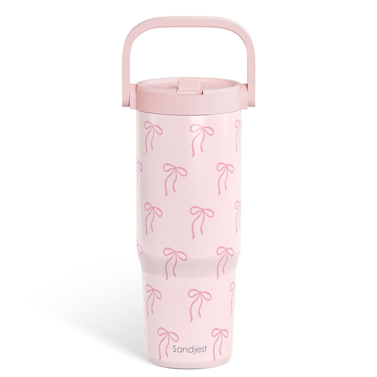 Pink Bow Stainless Steel Straw Lid Tumbler 30oz with Carry Handle for Women Girls, Insulated Travel Coffee Cup, Gift for Sports Outdoor Workout Christmas Birthday
