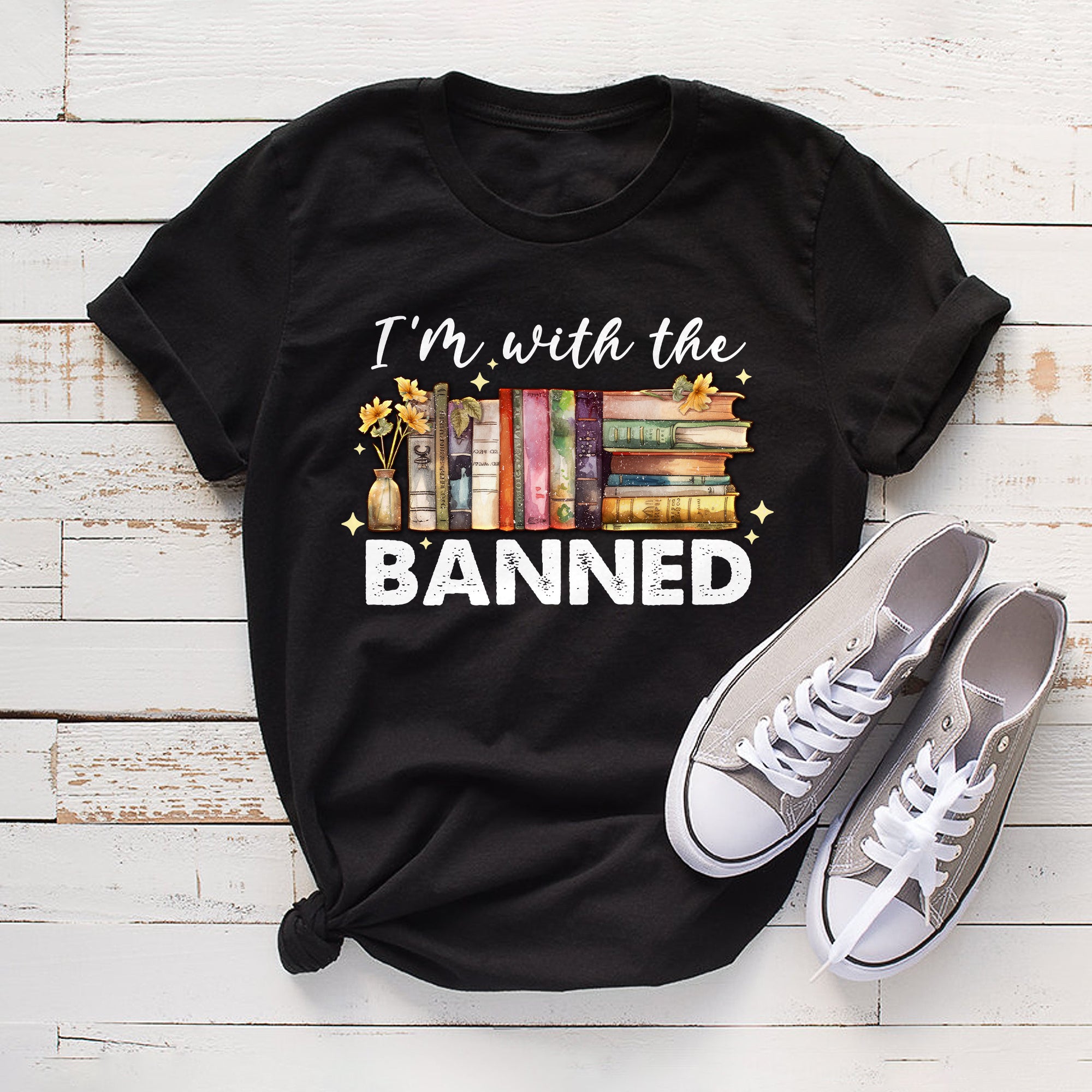 Sandjest Book Lover T-Shirt I’m with the Banned Gift for Women Girl Bookworms