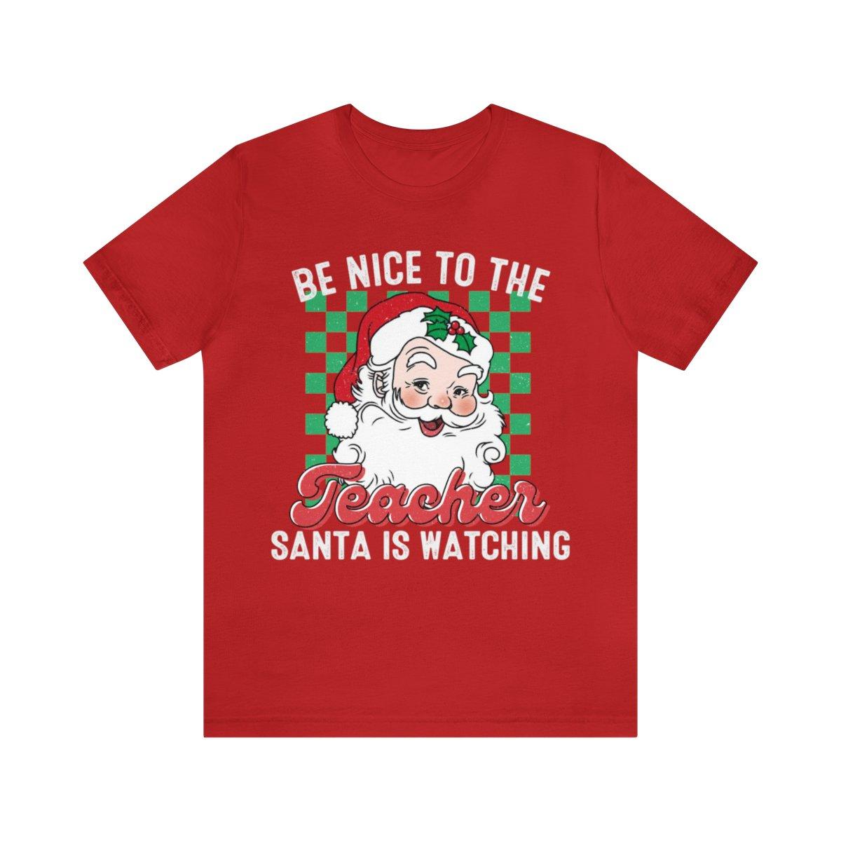 Sandjest Christmas T-shirt Be Nice to the Teacher Santa Is Waiting Gift for Women Girl Friend