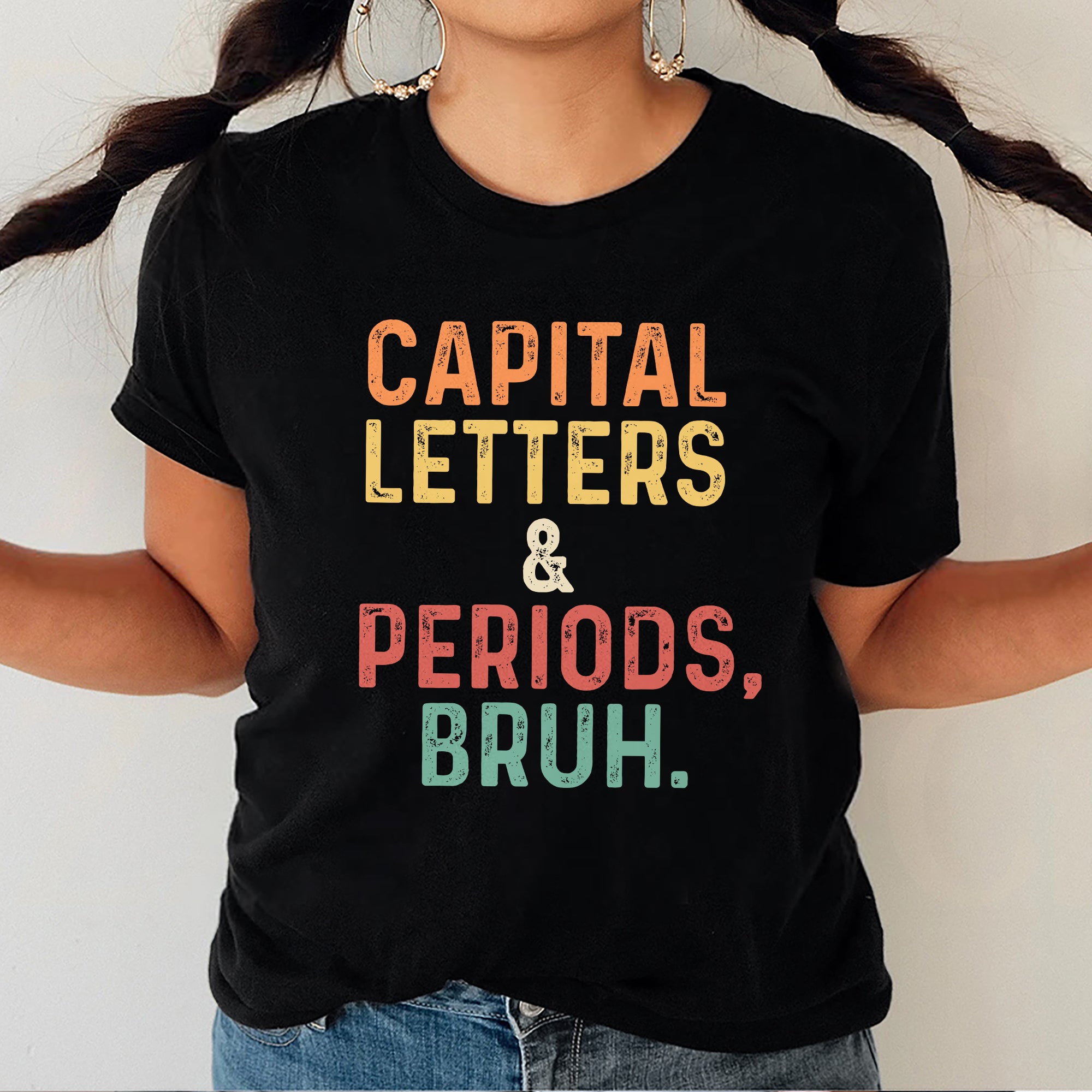 Sandjest English Teacher T-Shirt Capital Letters and Periods Bruh Gift for Women Mother Mommy