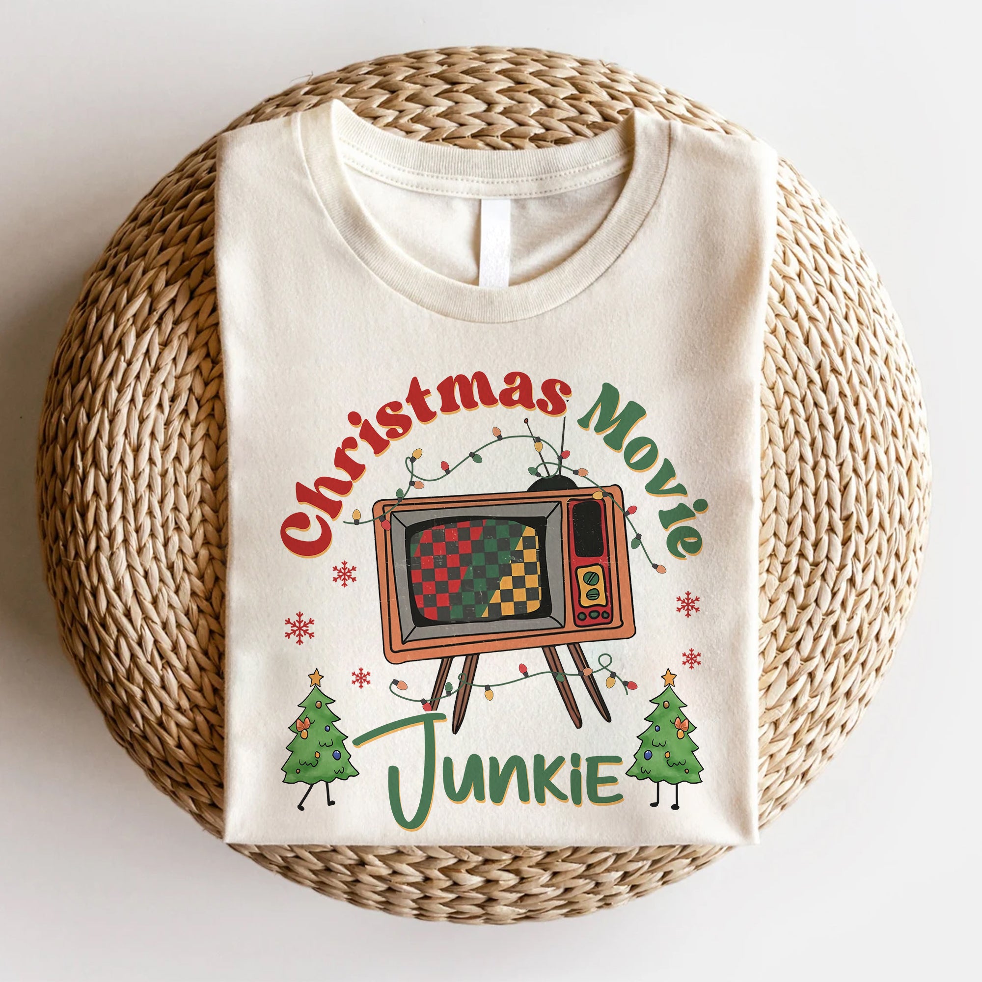Sandjest-Funny-Christmas-Retro-Graphic-Tee,-Groovy-Vintage-Christmas-Shirt,-Christmas-Movie-Junkie-Sweatshirt,-Trendy-Holiday-Apparel-Xmas-Gift