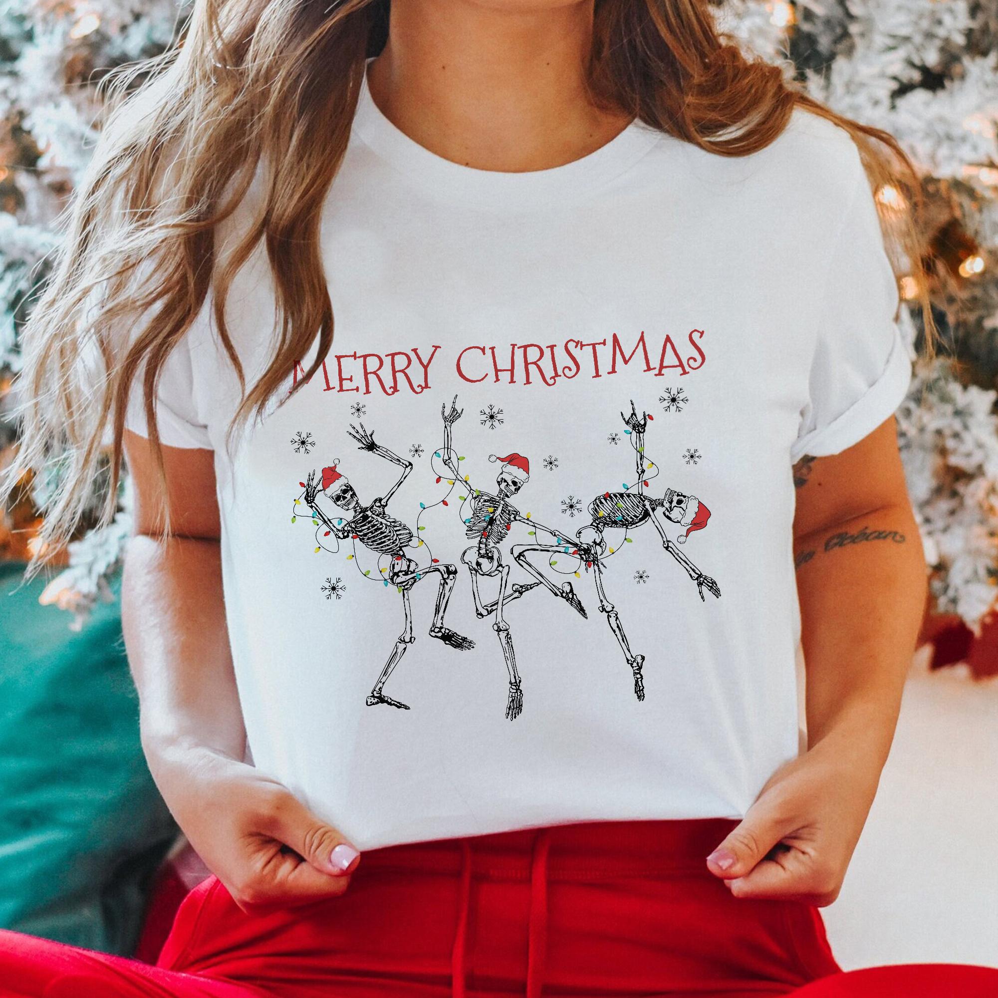 Sandjest Funny Christmas Tshirt Dancing Skeleton Gift for Women Girl Friend