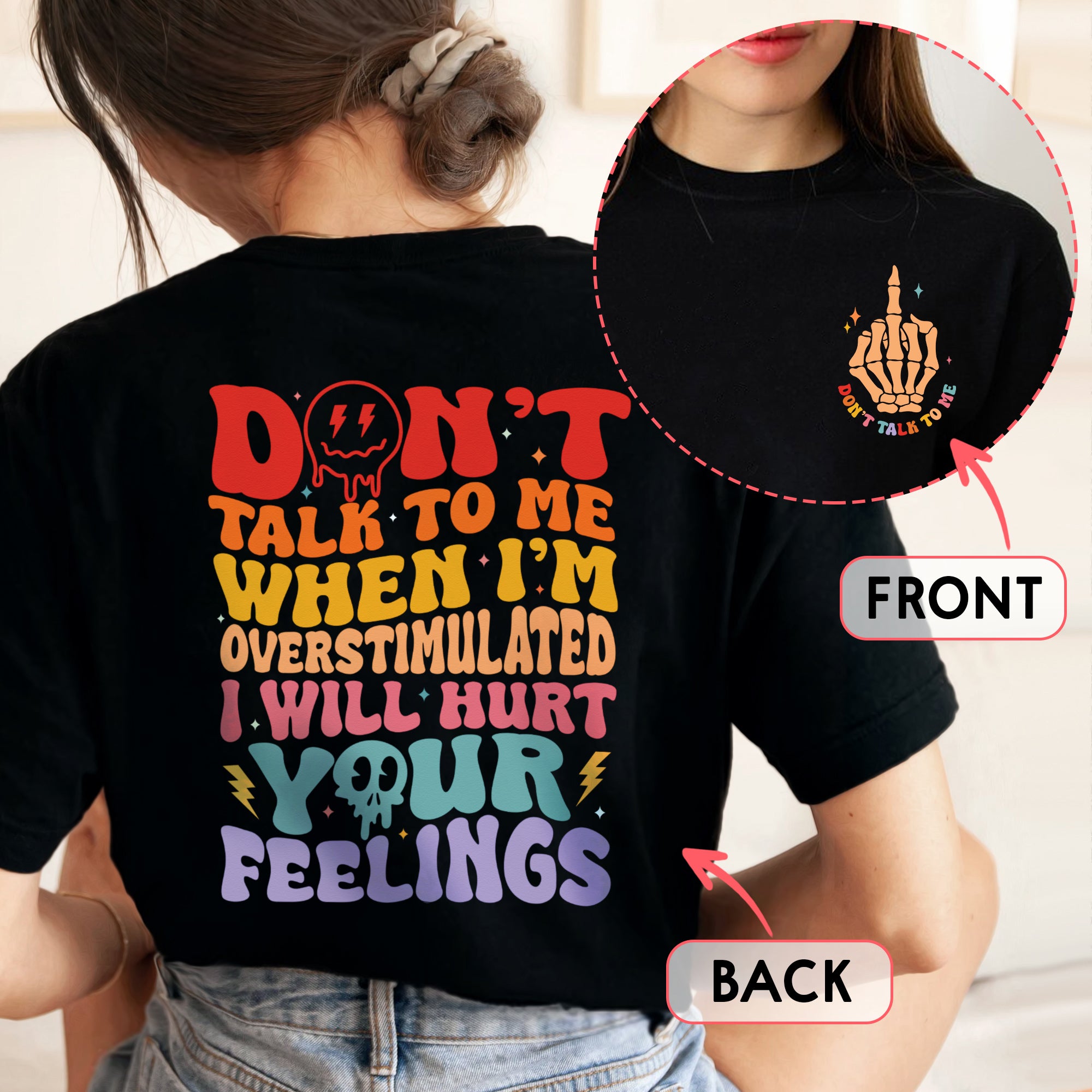 Sandjest Funny T-Shirt Don't Talk to Me When I'm Overstimulated Gift for Friend Women