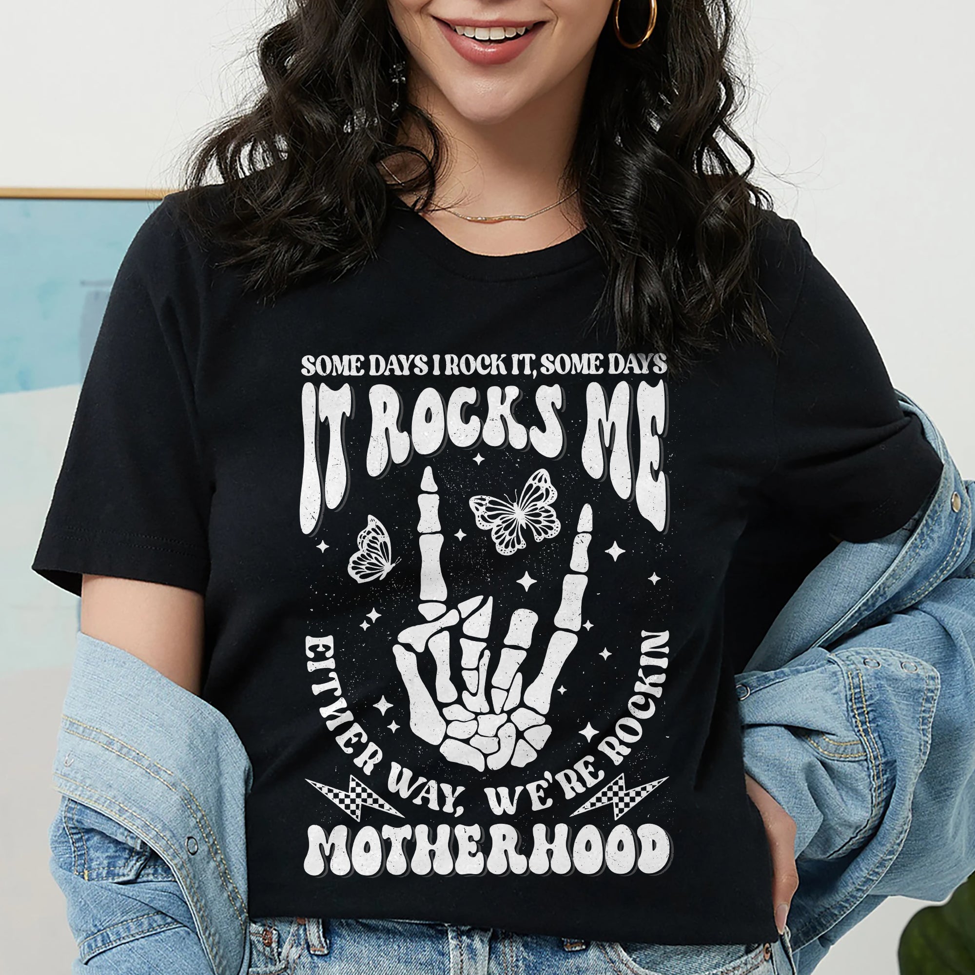 Sandjest Motherhood Shirt, Funny Mom Shirt, Skeleton Rocking Motherhood Graphic Tee, Trendy Mom Life Shirt, Shirt Gift for Cool Mom