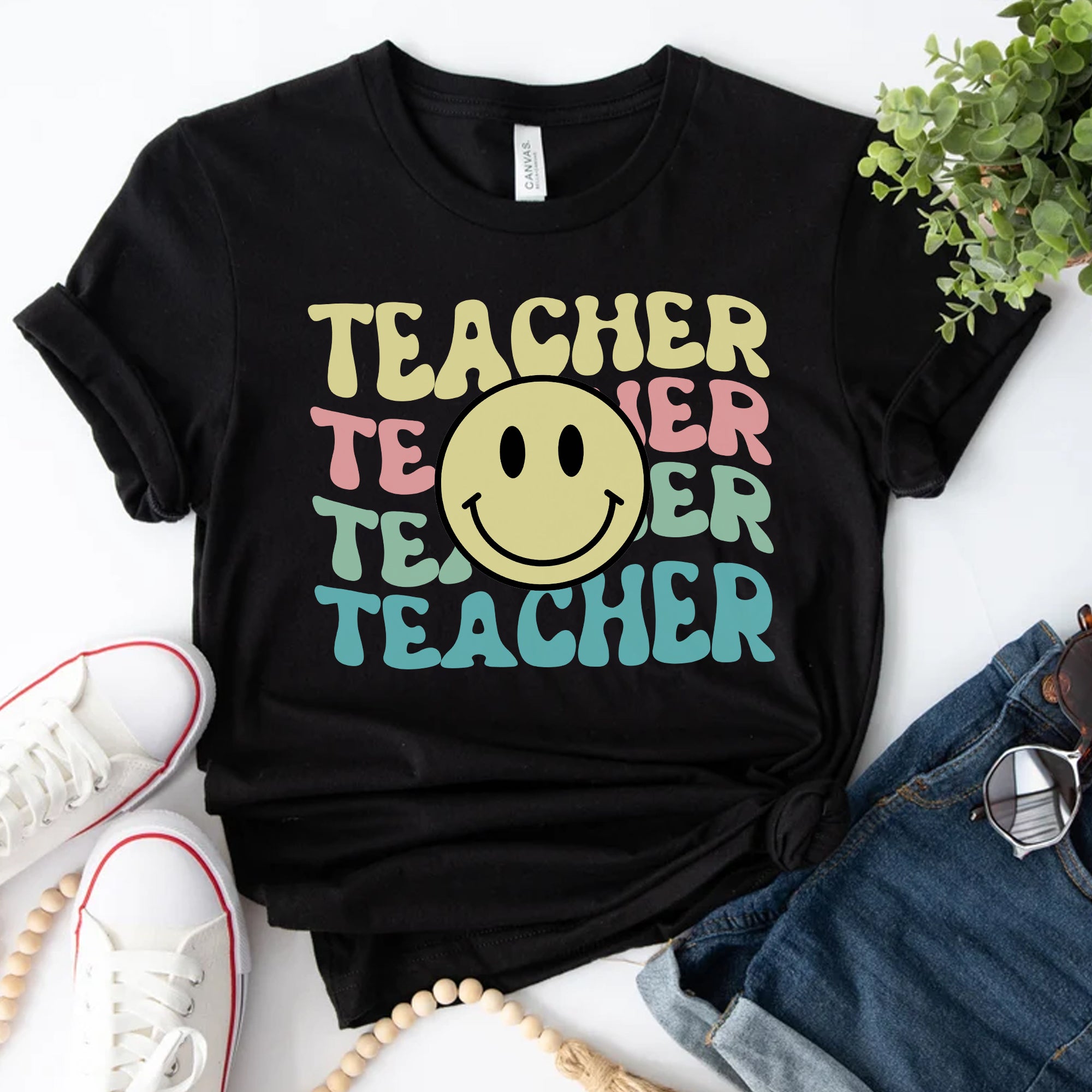 Sandjest Teacher T-Shirt Smiling Face Gift for Women Teachers Professors