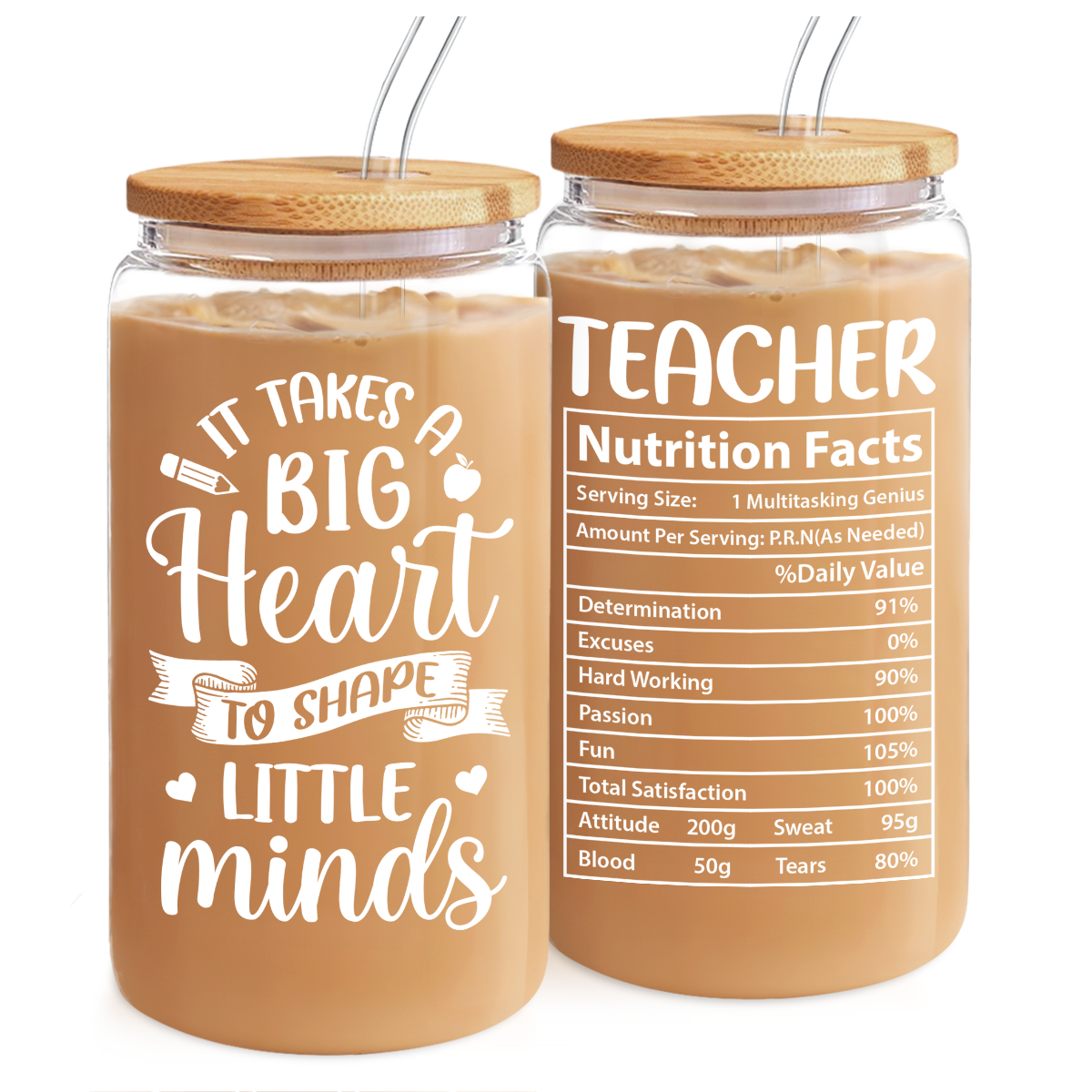 Teacher 16 Oz Can Glass Coffee Cup with Straws - Teacher Appreciation Gift on Birthday Back To School